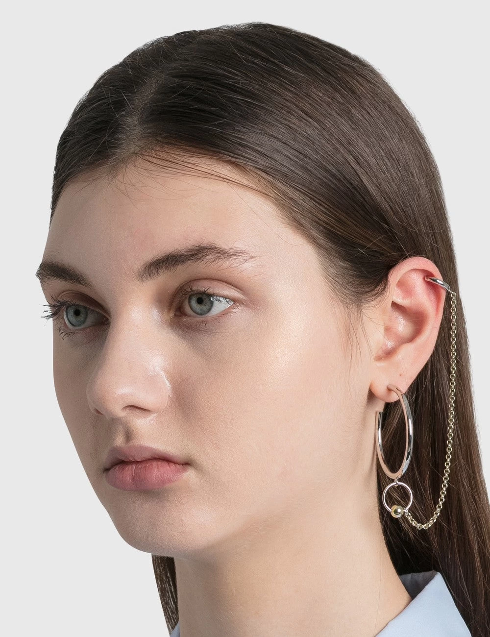 Justine Clenquet’s masterful approach to unique jewelry design has us all lusting over the label’s earring and ear cuff combination. Crafted from palladium-plated brass and pale 24k gold, it features a single hoop and cuff connected by a long, shimmery chain. Wear yours as a single or mixed-and-matched with other designs from the label. Sold as a single.