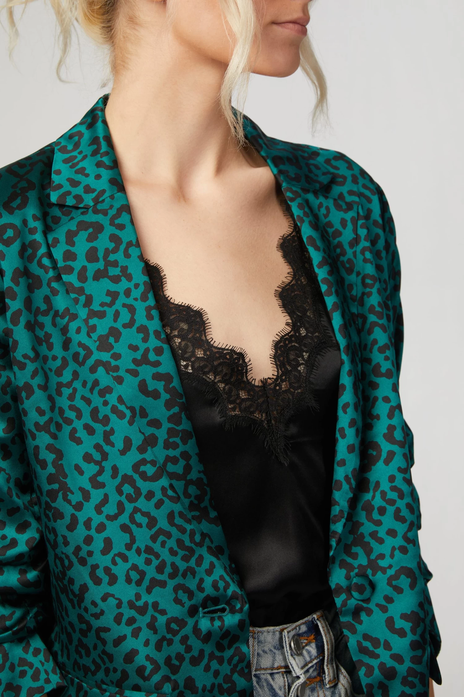Bringing bold femininity to classic tailoring, this ‘OIlie’ blazer is smart and elevated. Made from pure silk, it has a center back vent that ensures a comfortable fit and pre-ruched elbow length sleeves which give a laid back appeal. Pair with the matching ‘Jessica’ skirt for a feline take on traditional suiting.