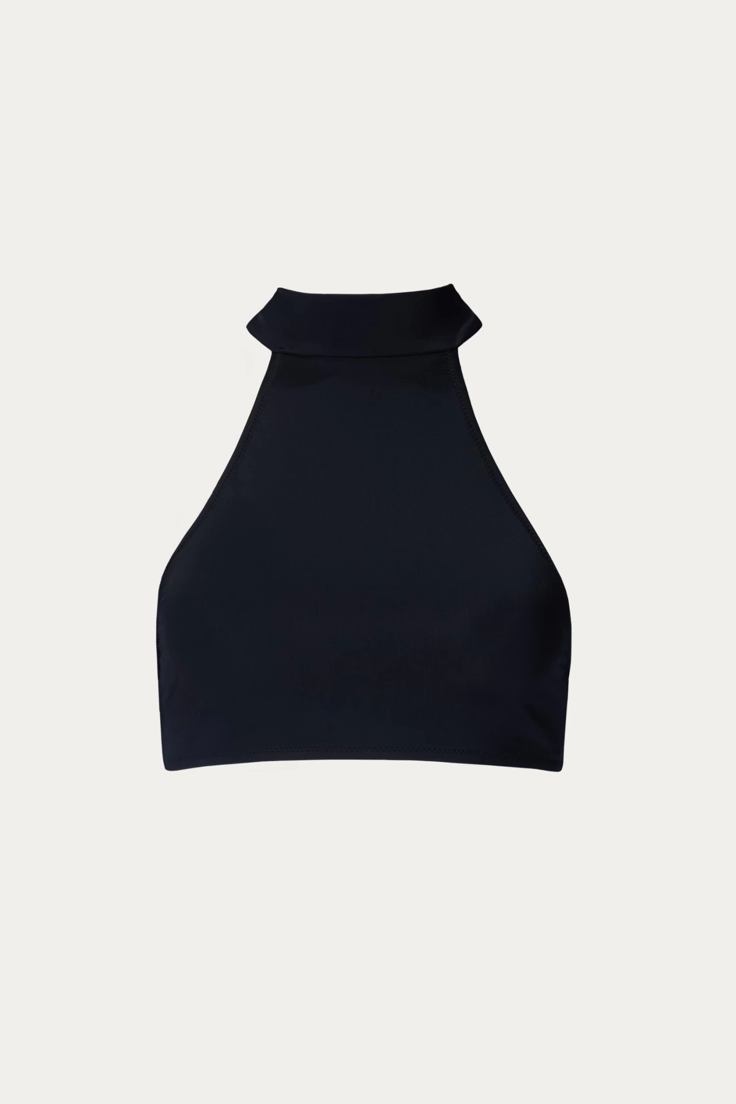 If you’re looking for an athletic option, this ‘Olympic’ bikini top has you covered. Made by hand in Portugal, this sporty halter top provides extra coverage and support with the high neck while the exposed back keeps you cool from the warm sun. It is made to techno-fabric with 100% regenerated polyamide fibers from post-consumer material. We like it best paired with the ‘Erato’ bikini bottom.