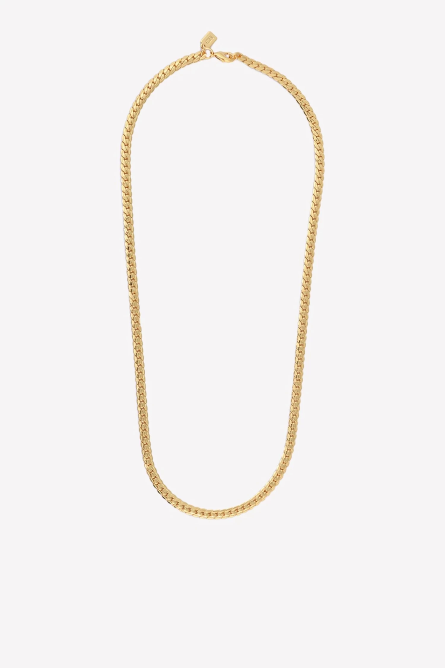 Crystal Haze Jewelry’s ‘Oslo’ curb chain necklace is a timeless classic that can be worn alone or strung with a pendant. Made of 18-karat gold-plated brass, it features flattened links that are tightly interlocked and twisted. Layer it with other favorites from the label in a variety of lengths.Â