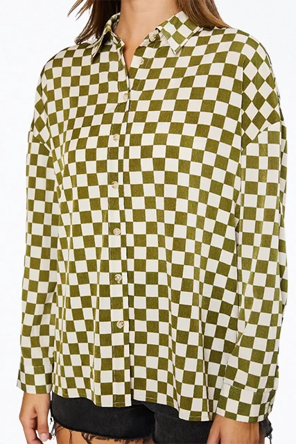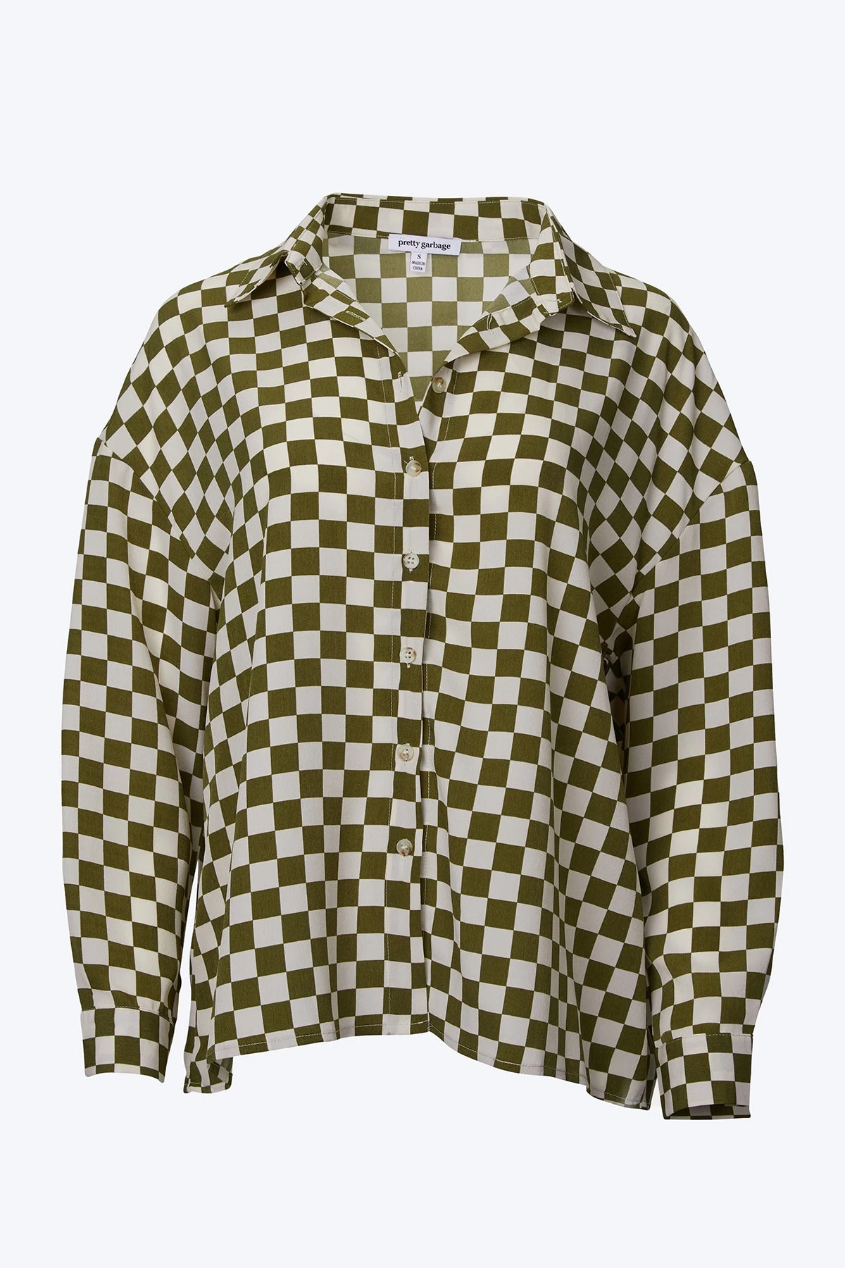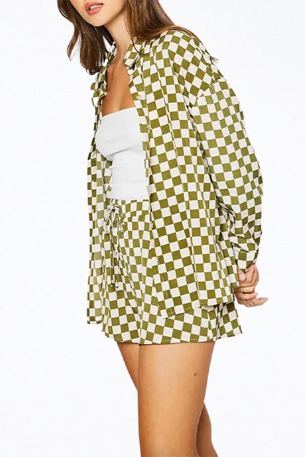 With a lightweight handle, Pretty Garbage’s shirt has been woven with pink checks and looks best when paired with the matching shorts. It has an oversized fit that looks great buttoned up or worn open over a camisole or tee. Wear yours with sneakers for a casual cool look.