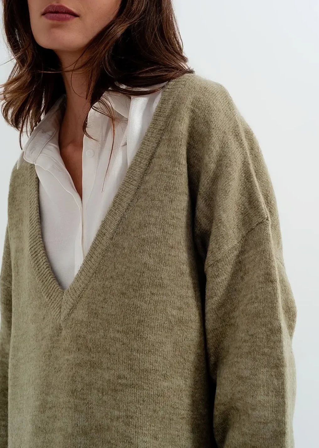 Update your cold-weather edit with Q2’s effortless jumper. Knitted to an oversized tunic silhouette, it has dropped shoulders and a V-neckline. Layer yours over slim-fitting pants with gold jewelry. The one size fit accommodates sizes XS-L and all body types.Â