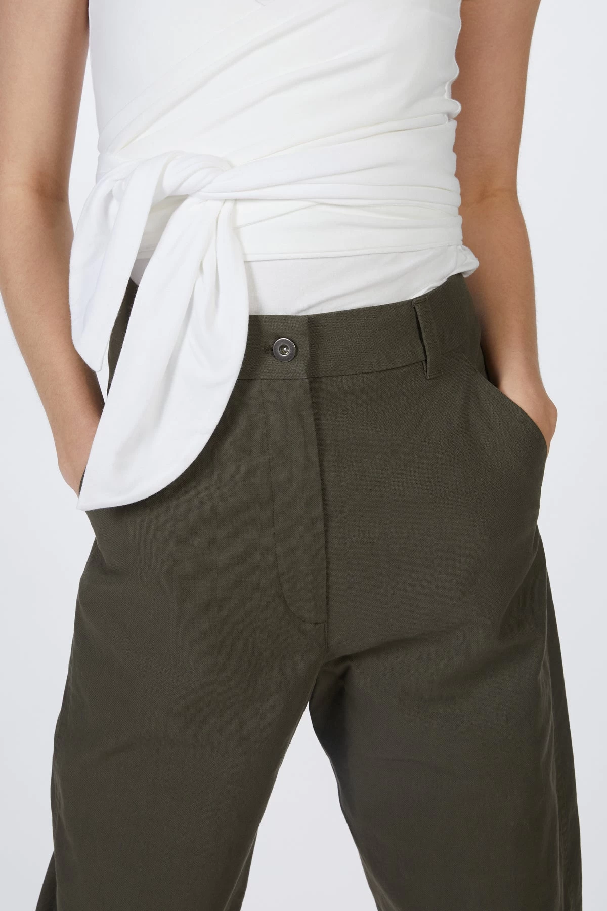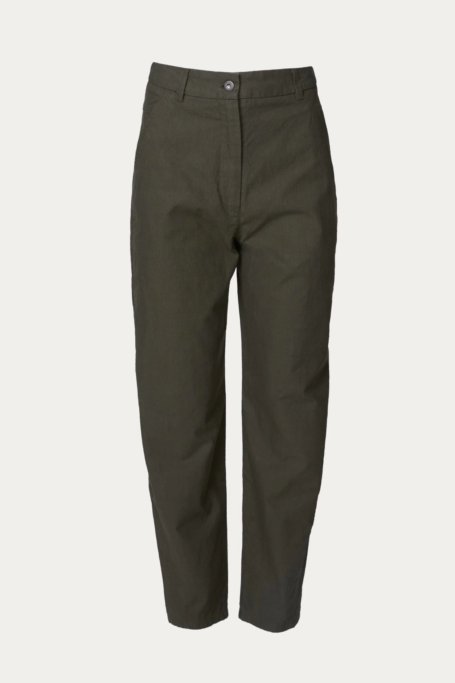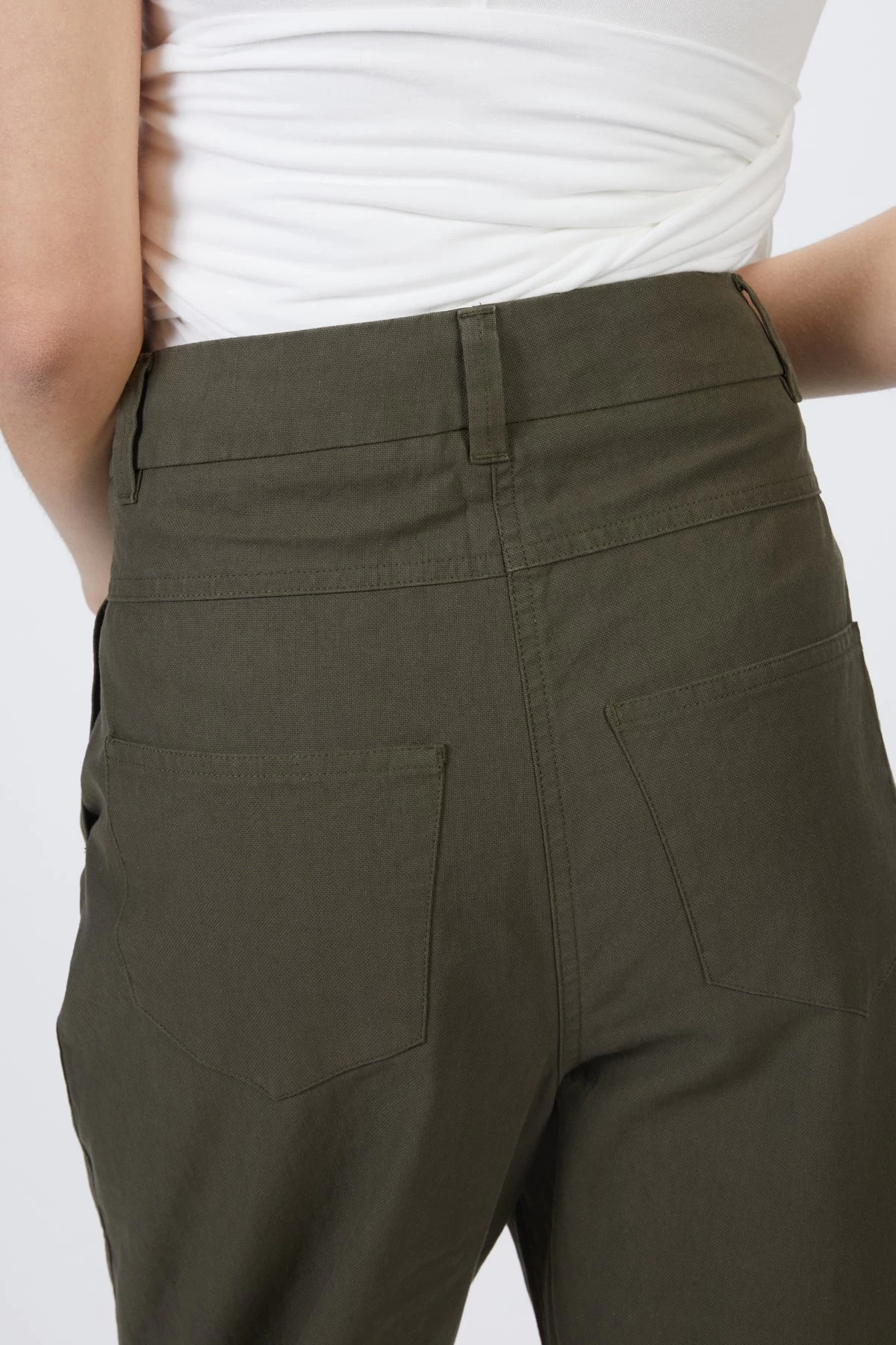 If you want an alternative to jeans, your favorite T-shirts and button-downs will go just as well with Humanoid’s ‘Peggy’ pants. They’re cut from Italian cotton in a barrel-leg shape and sit high on the waist. The army-green hue will team well with almost every color.