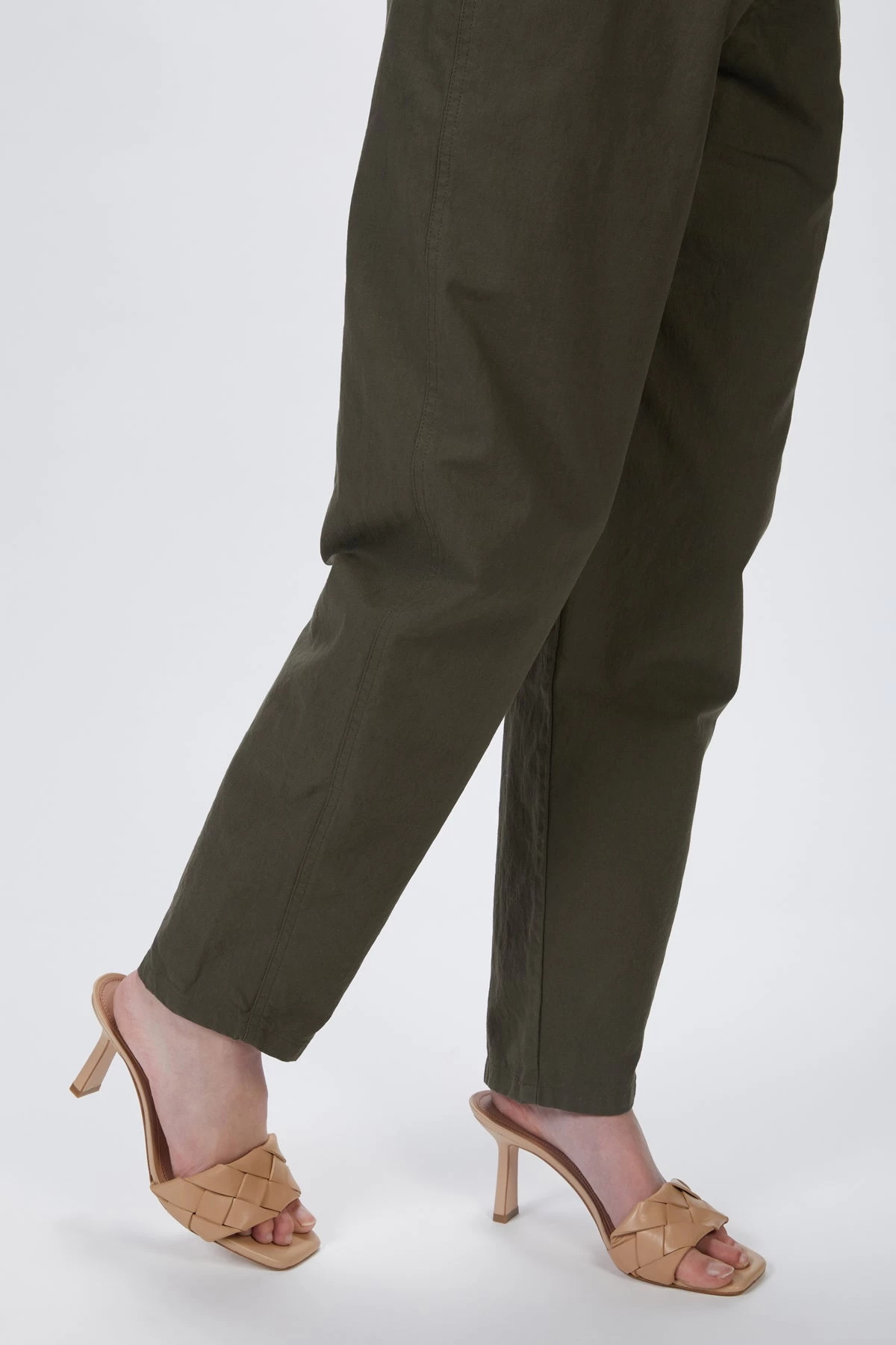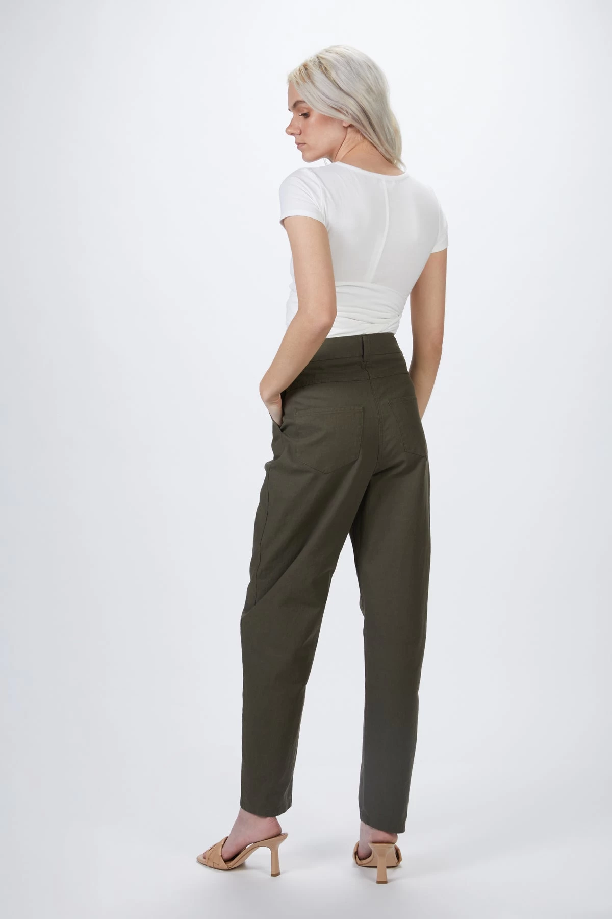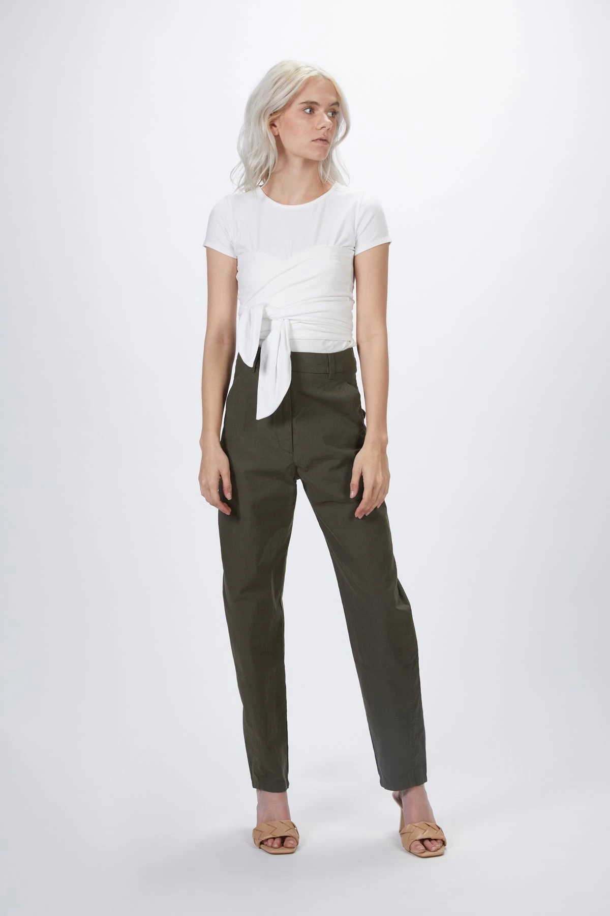If you want an alternative to jeans, your favorite T-shirts and button-downs will go just as well with Humanoid’s ‘Peggy’ pants. They’re cut from Italian cotton in a barrel-leg shape and sit high on the waist. The army-green hue will team well with almost every color.