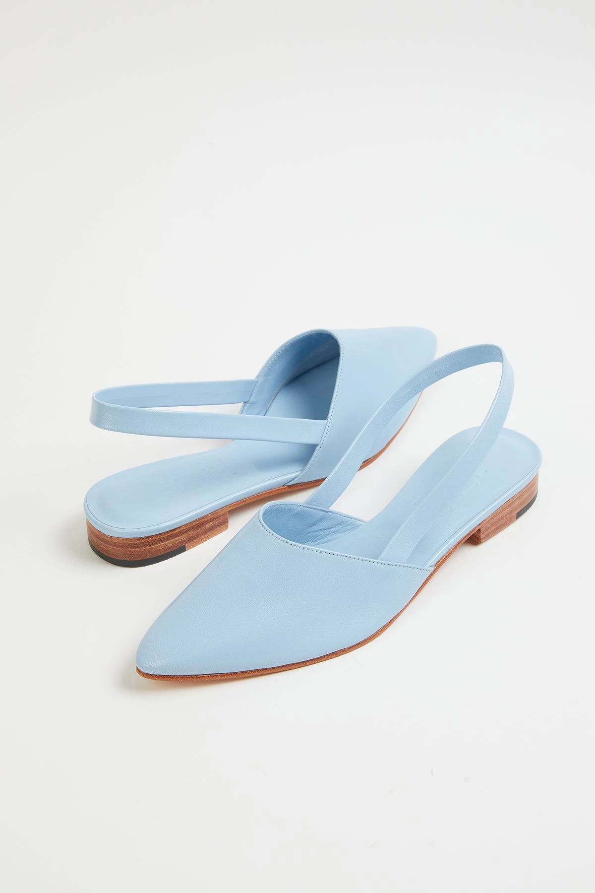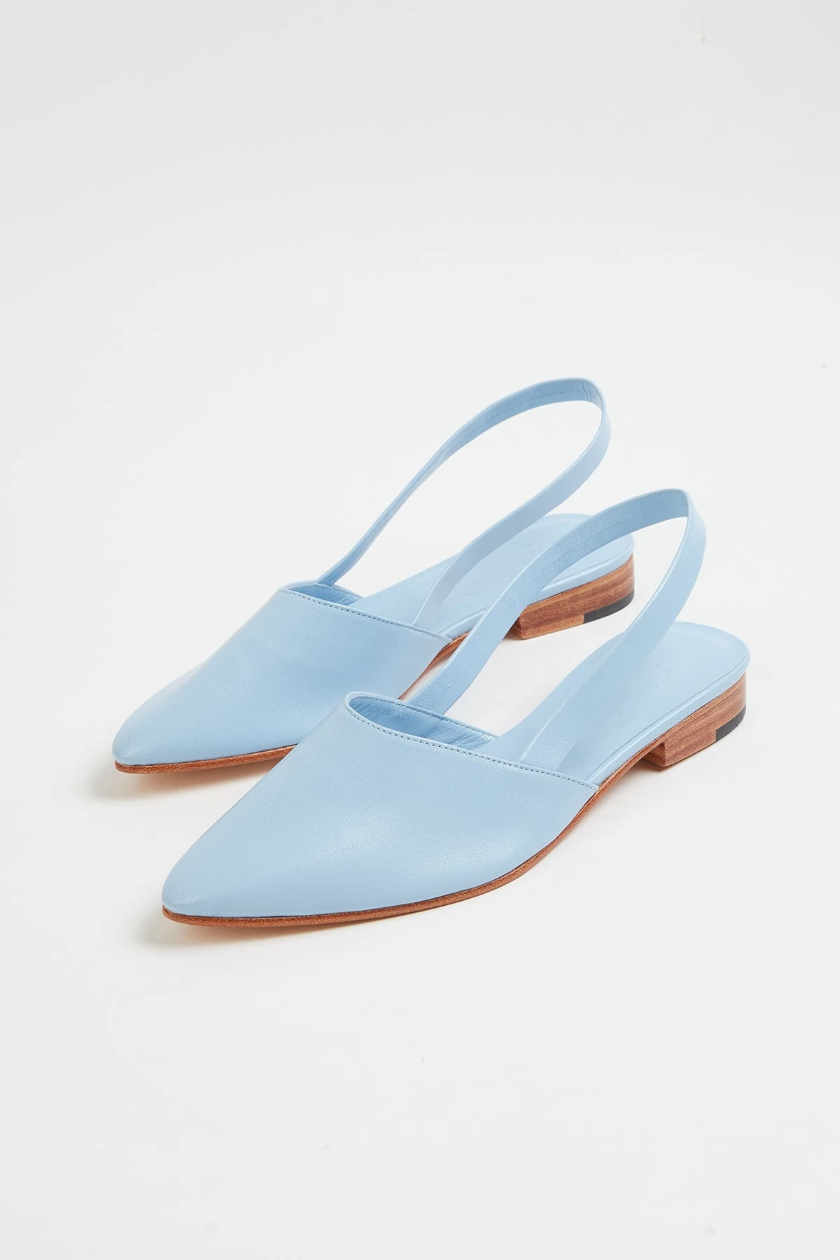 Handmade in Argentina from smooth light blue leather, Martiniano’s ‘Picnic’ flats have a point-toe silhouette with a lightly padded footbed and elasticated slingback strap to ensure a flexible, comfortable fit. Style them with anything from jeans to dresses.