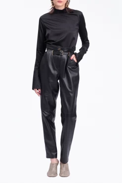 JOCELYN HIGH-RISE BELTED LEATHER PANTS