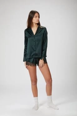 ADELE STRETCH-SILK SATIN PAJAMA TOP