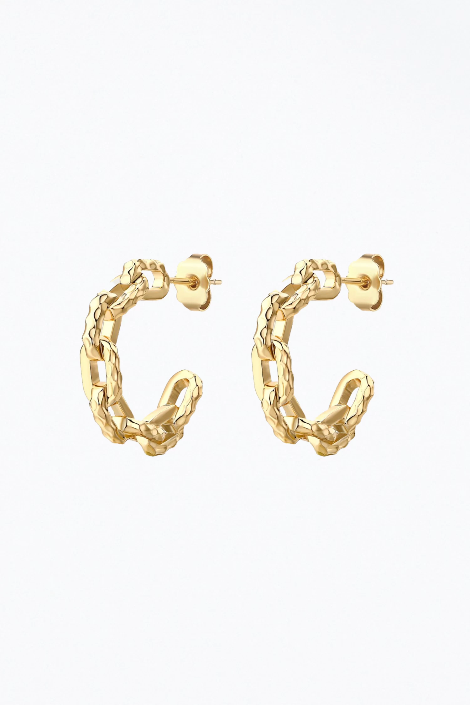 Handmade in Australia, F+H Studios’ ‘Ramones’ hoop earrings feature custom designed chain links with a square edge and are gently hammered for a light-catching finish. They are cast from 18-karat gold-plated brass and have a lightweight feel that’s perfect for everyday wear. Sold as a set for pierced ears.