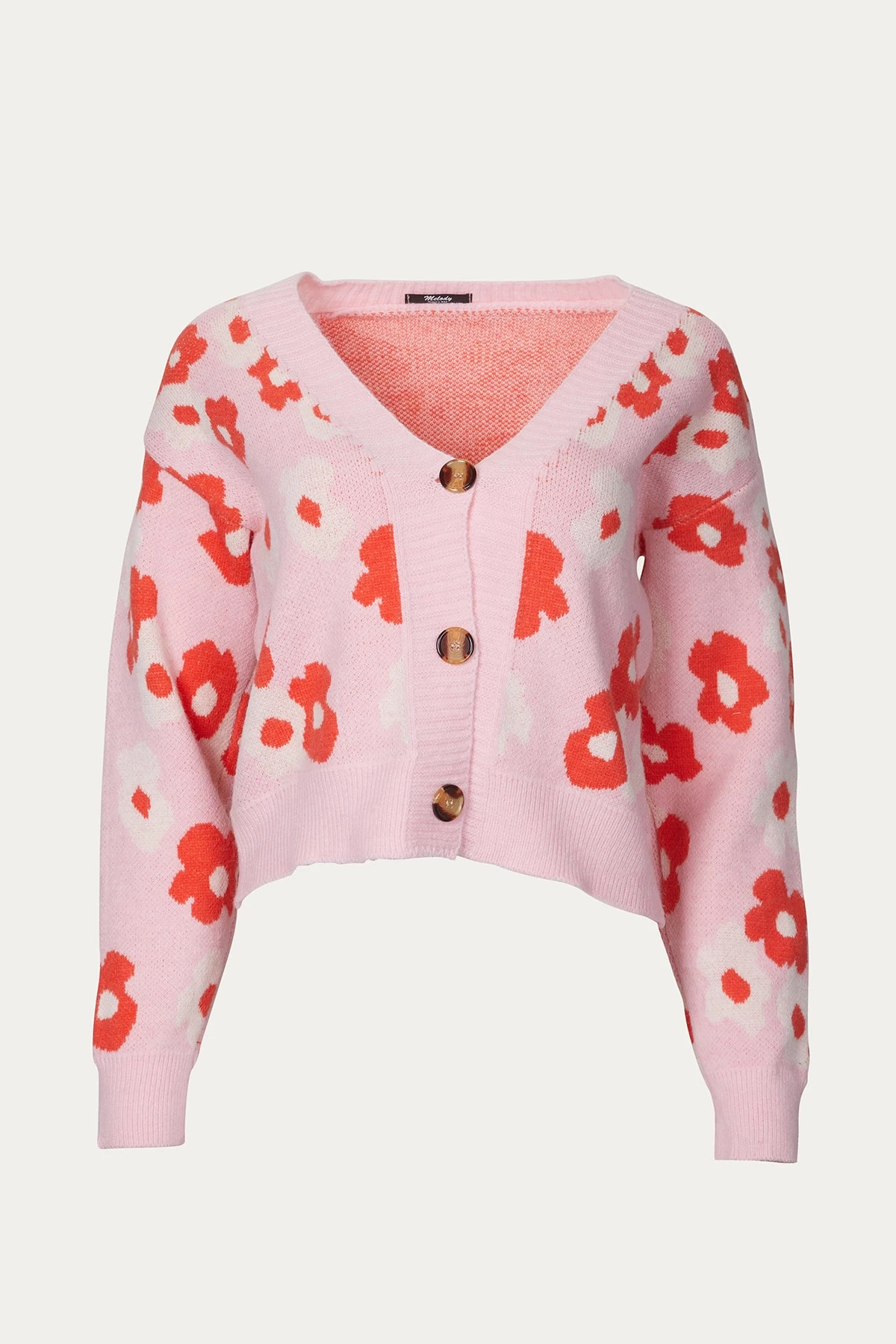 Melody’s cardigan sweater pays homage to ’70s blooms with its retro flower-power version. Knit with daisies to a slouchy silhouette enhanced with dropped shoulders, it has a button-up front and is finished with ribbed trims. Wear yours with high-waisted pants and shorts to complement the slightly cropped hem. One size fit.