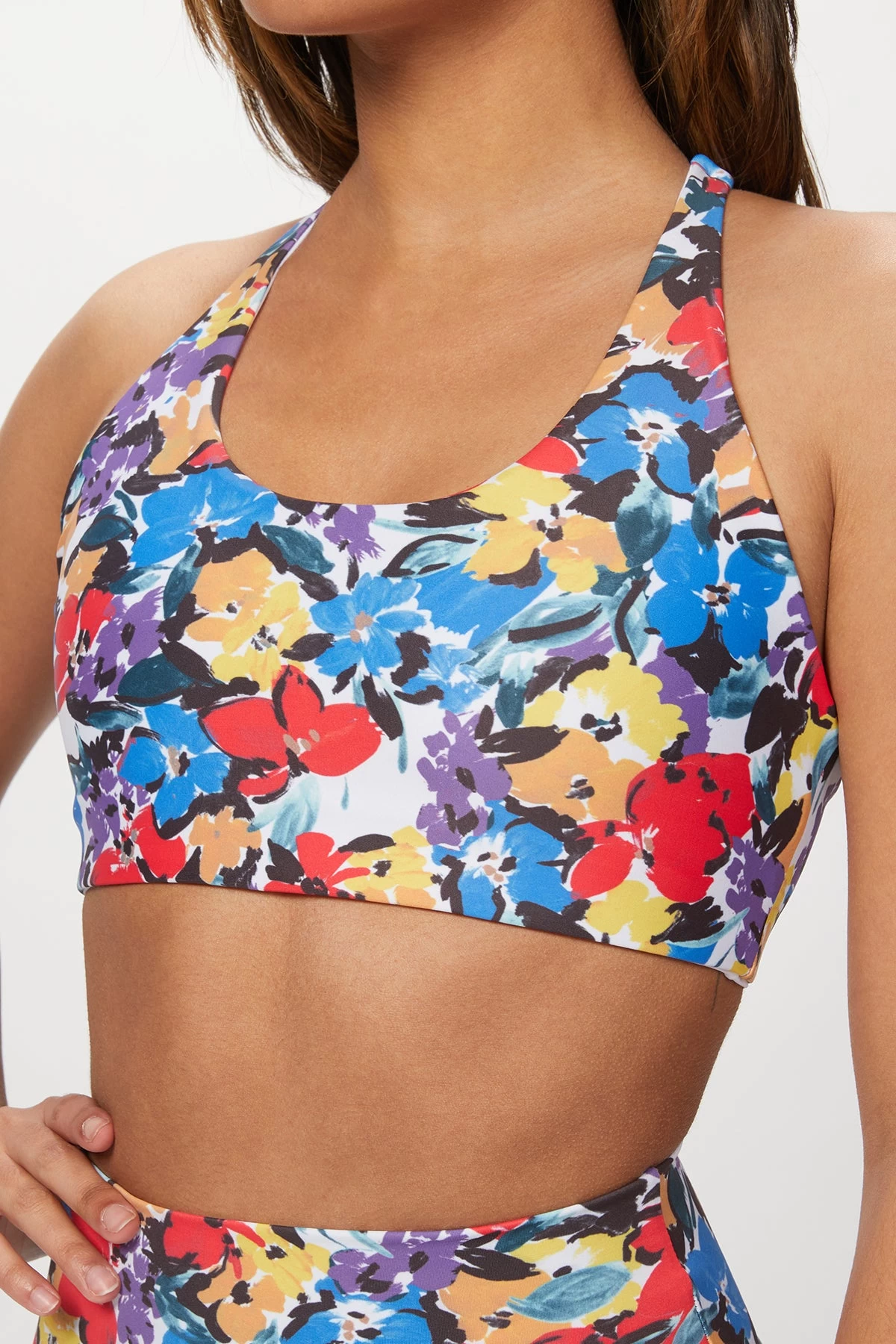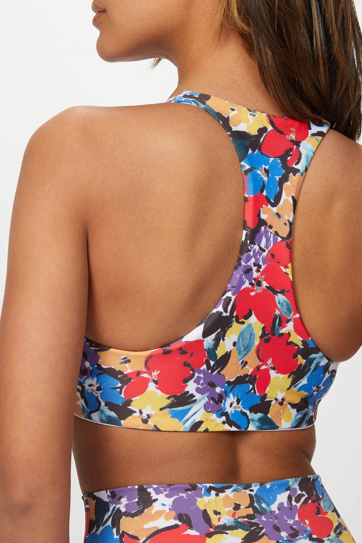 Blended with stretch for comfort, Beach Riot’s ‘Rocky’ top has thick straps that provide support while allowing you to move effortlessly. It is designed in the label’s pretty ‘Buttercup Floral’ print in primary colors. Pair with the ‘Piper’ legging or ‘Bike’ short in the matching print to complete the set for your next workout.