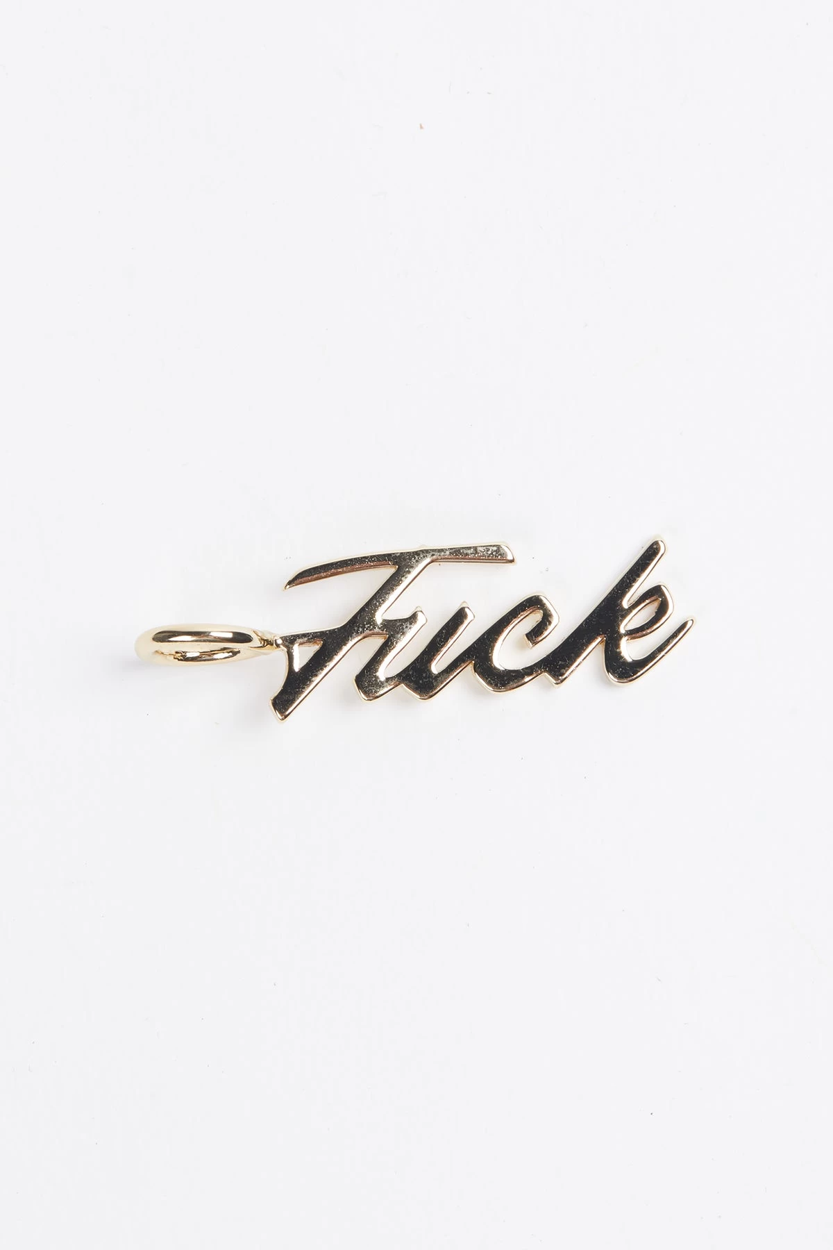 Add a touch of charm to your chain necklaces with the unapologetic ‘Fuck’ pendant. It is made from 10K gold-plated brass in script font. The pendant has a protective coating to prevent from wear and tarnishing and will fit over any of the Eklexic chain necklaces.