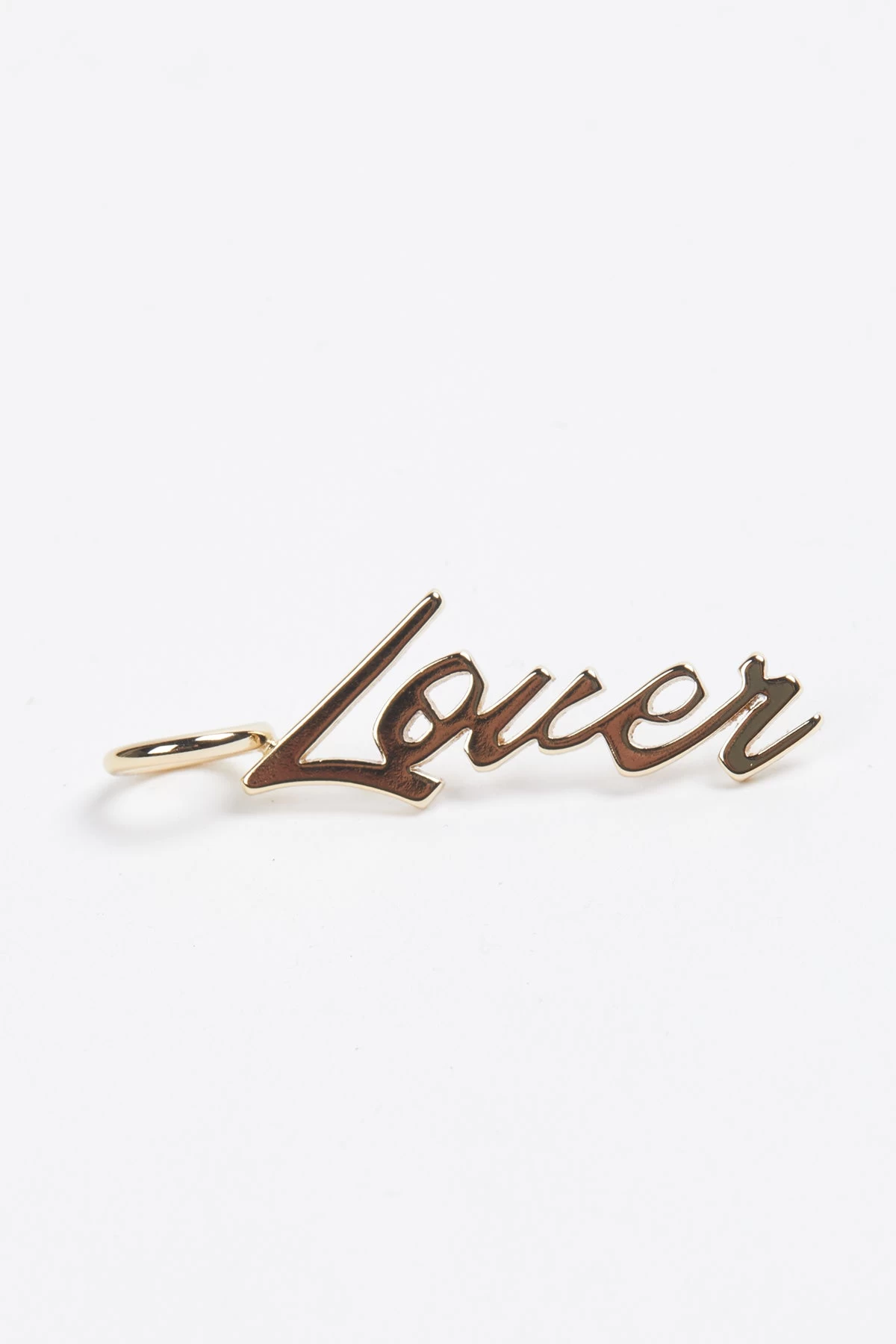 Add a touch of charm to your chain necklaces with the ‘Lover’ pendant. It is made from 10K gold-plated brass in script font. The pendant has a protective coating to prevent from wear and tarnishing and will fit over any of the Eklexic chain necklaces.