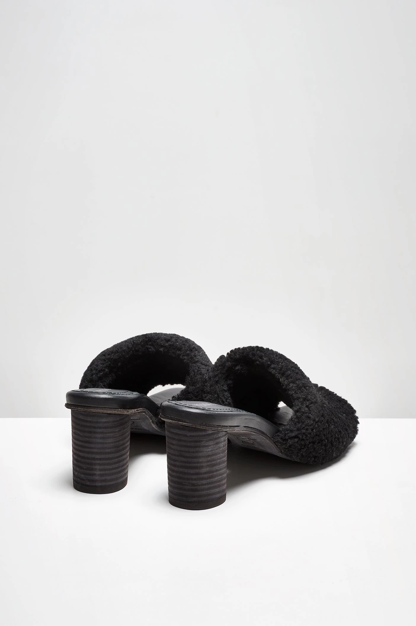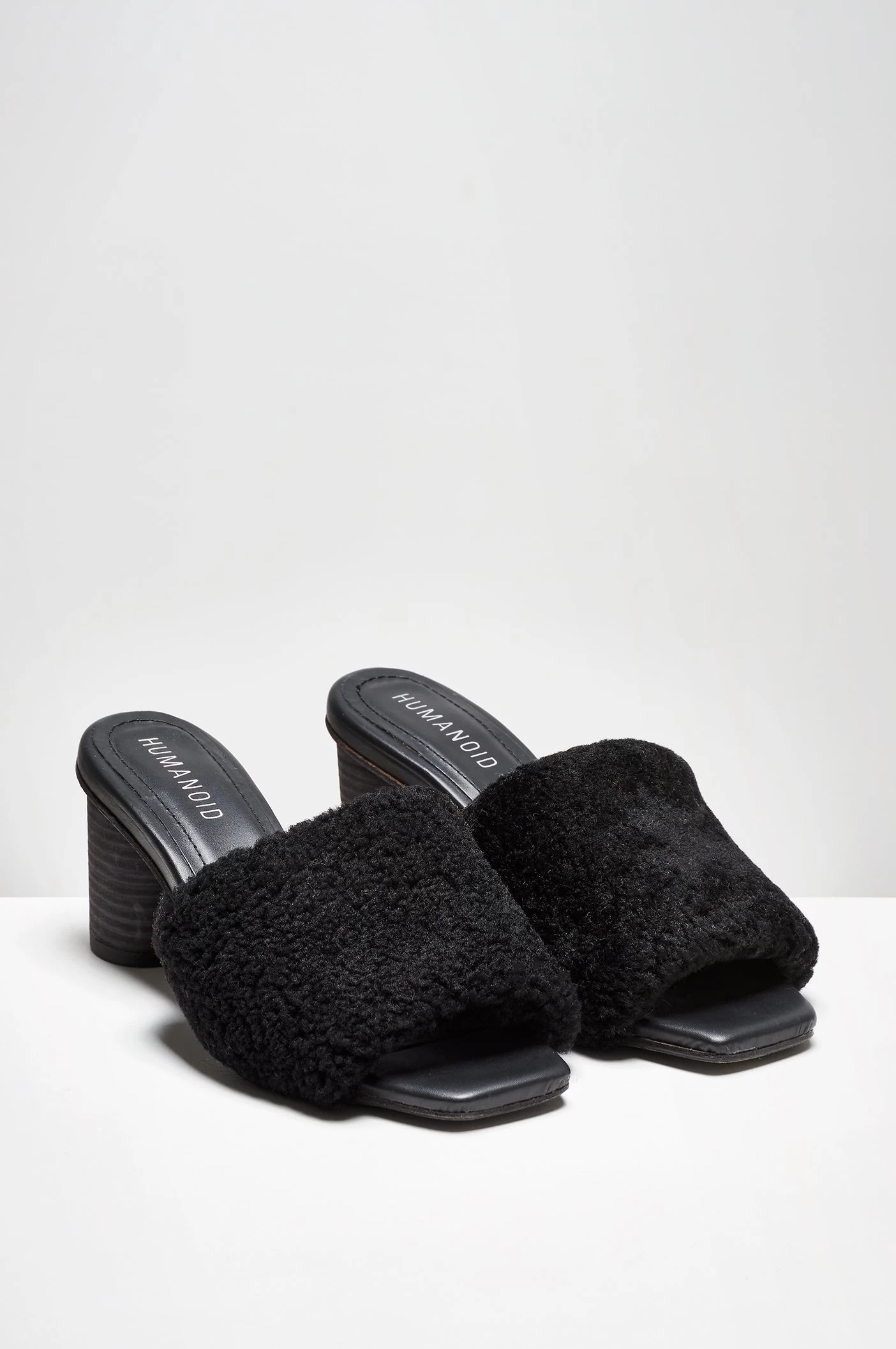 Made from fluffy black shearling and smooth leather, Humanoid’s ‘Silas’ mules are so versatile and effortless. They are set on a comfortable medium heel, ensuring a confident stride. Wear yours with cropped jeans or tailored pants.Â