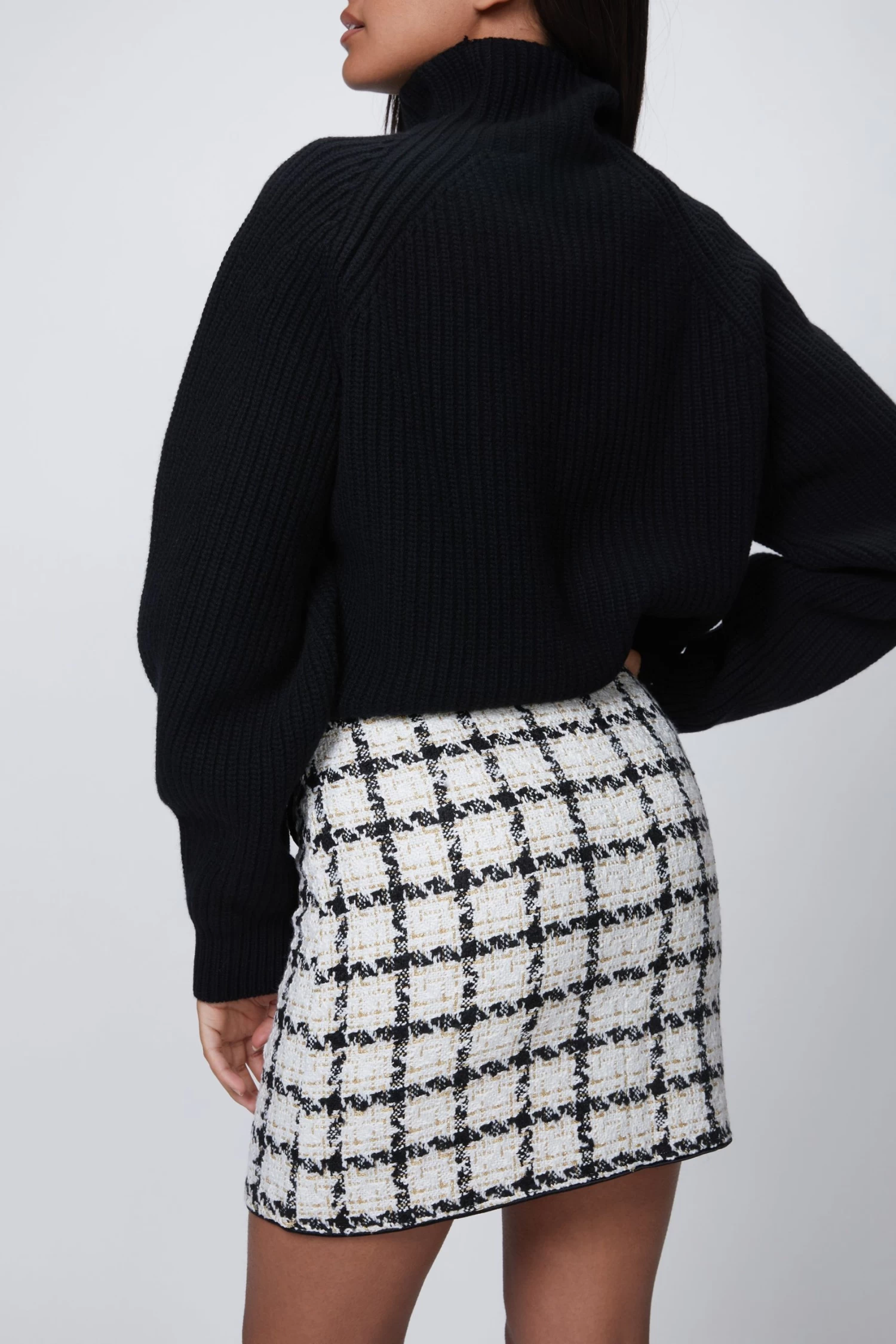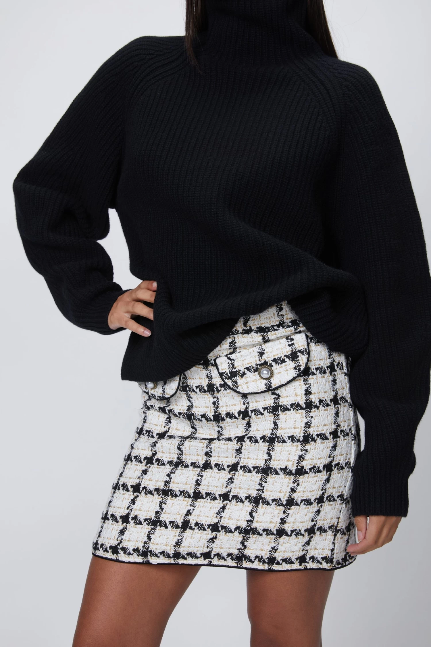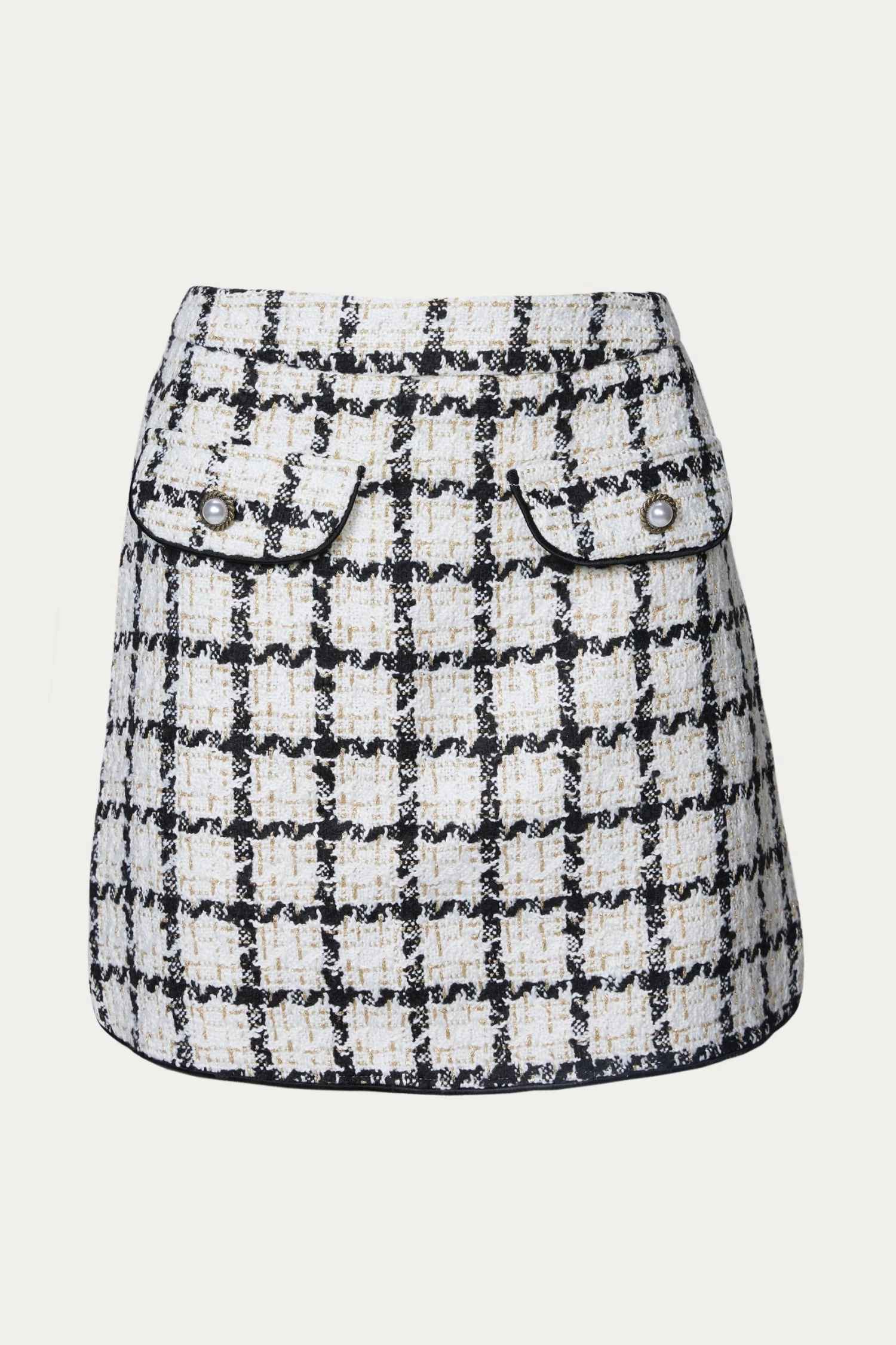 Mini skirt in a check tweed fabric. Â Detailed with piping around pocket flaps and hem and lined in a satin feel fabric. Â
