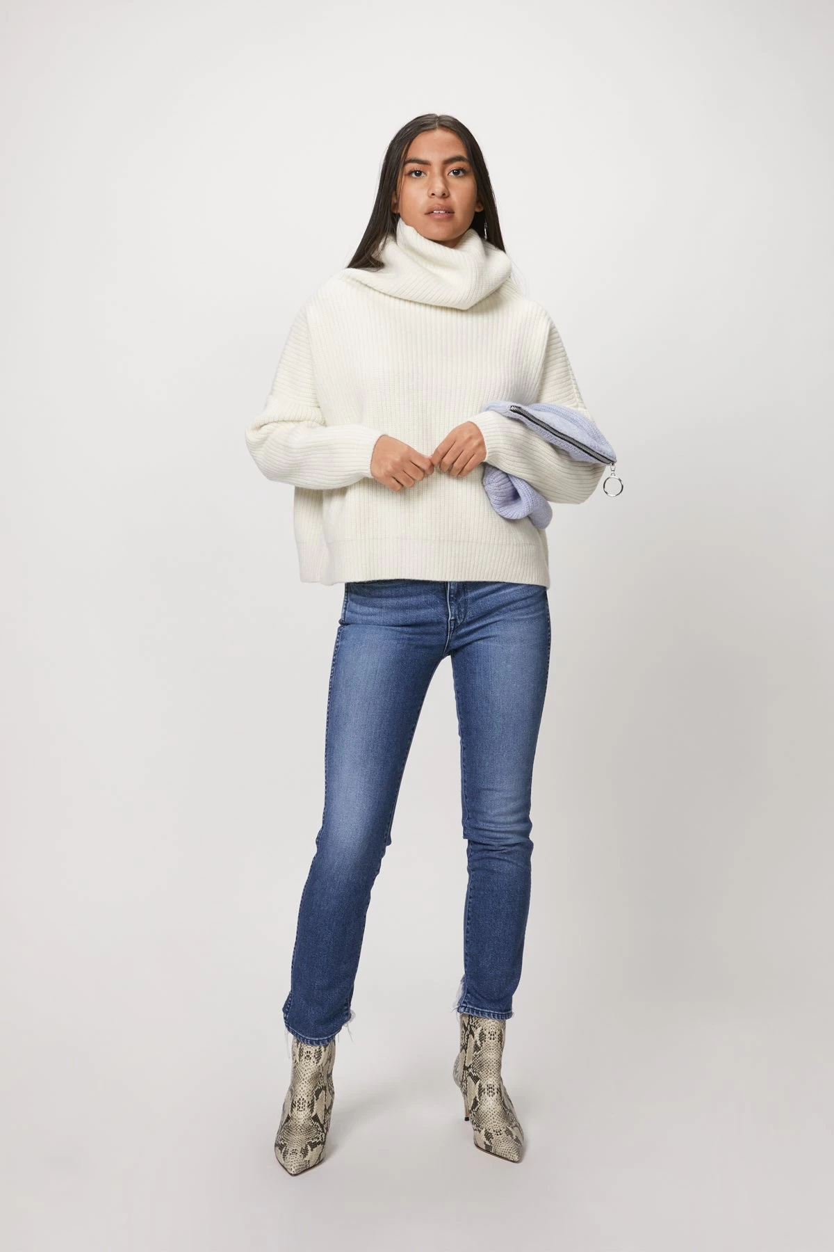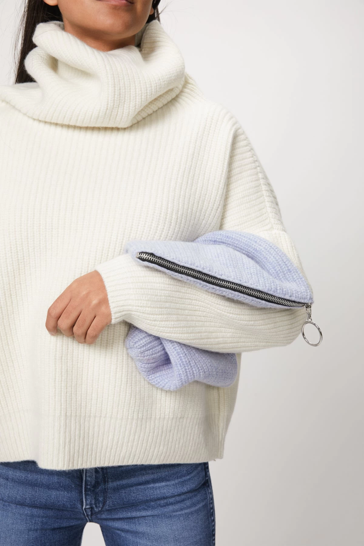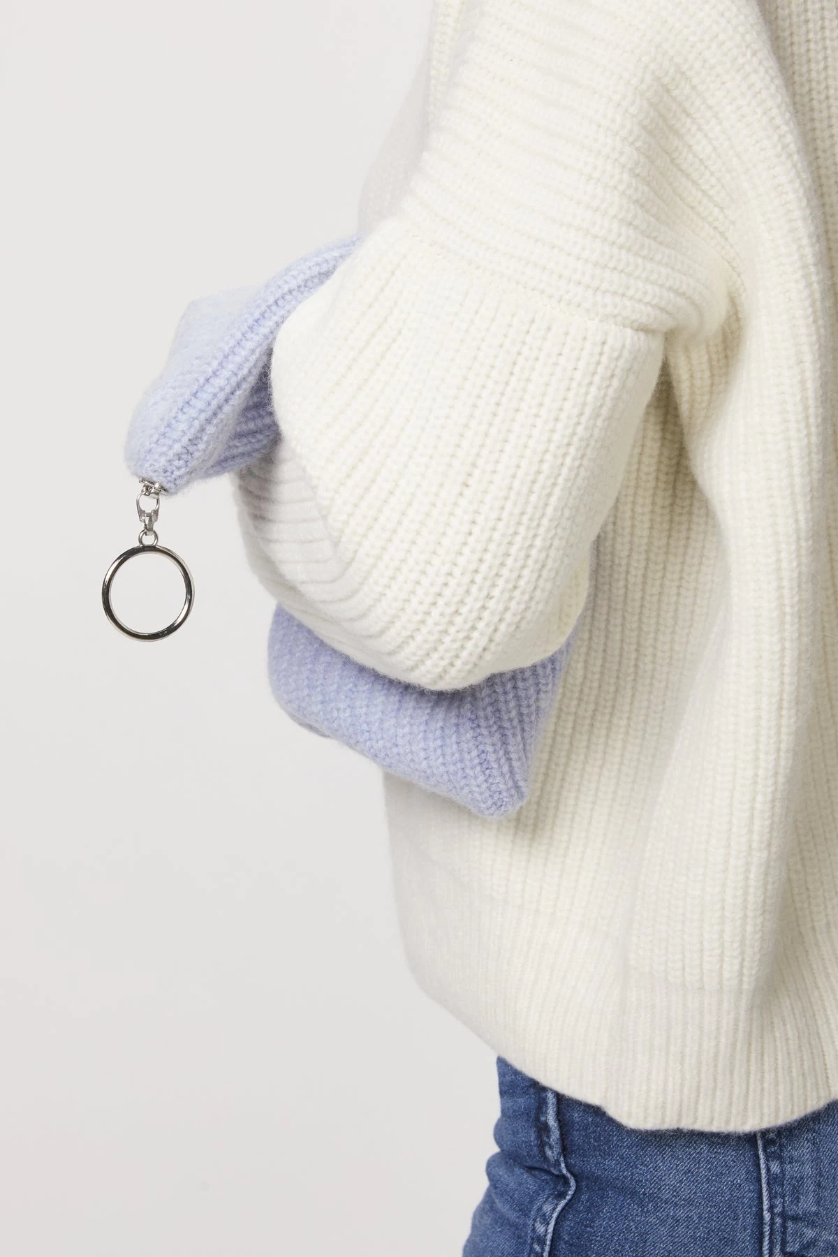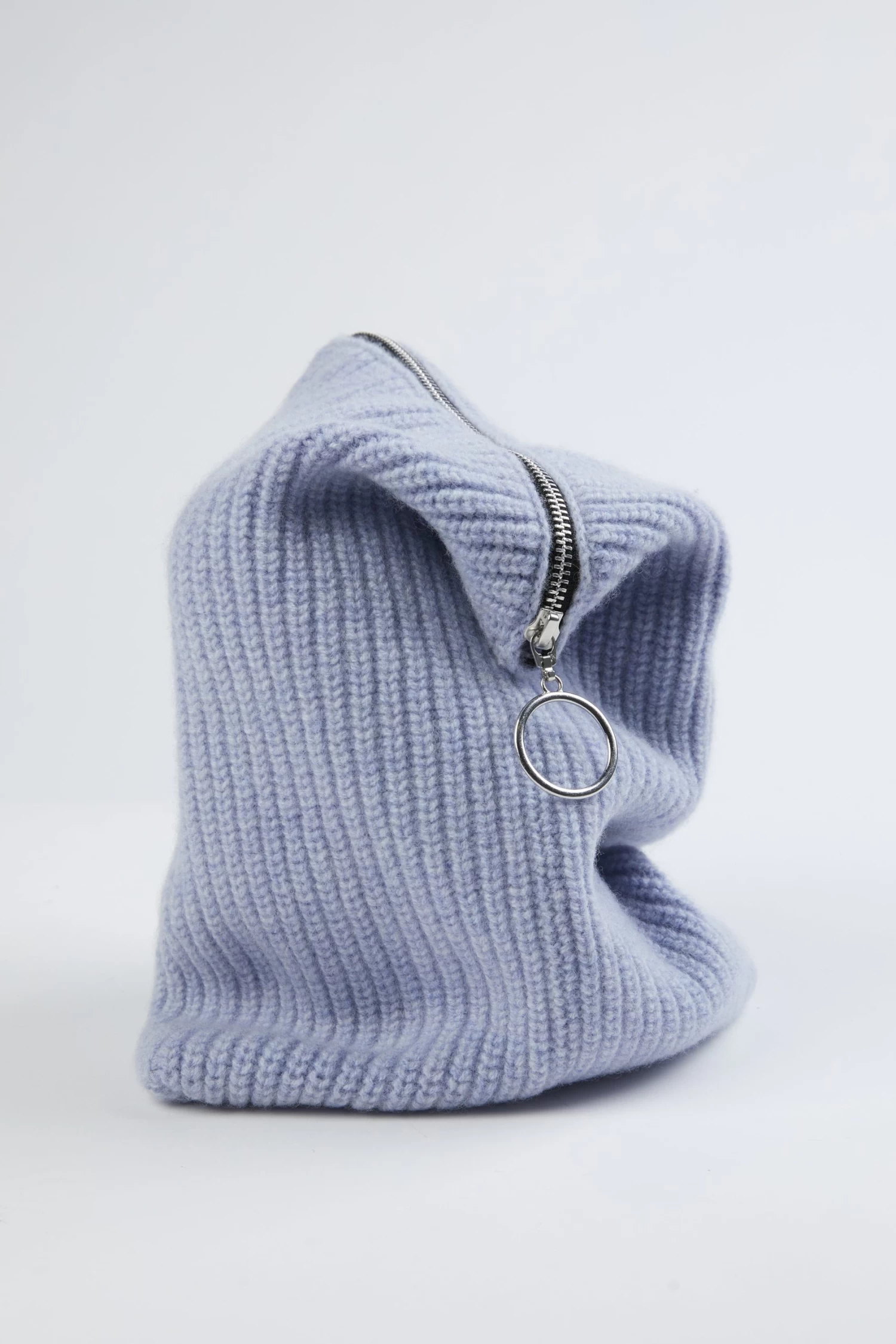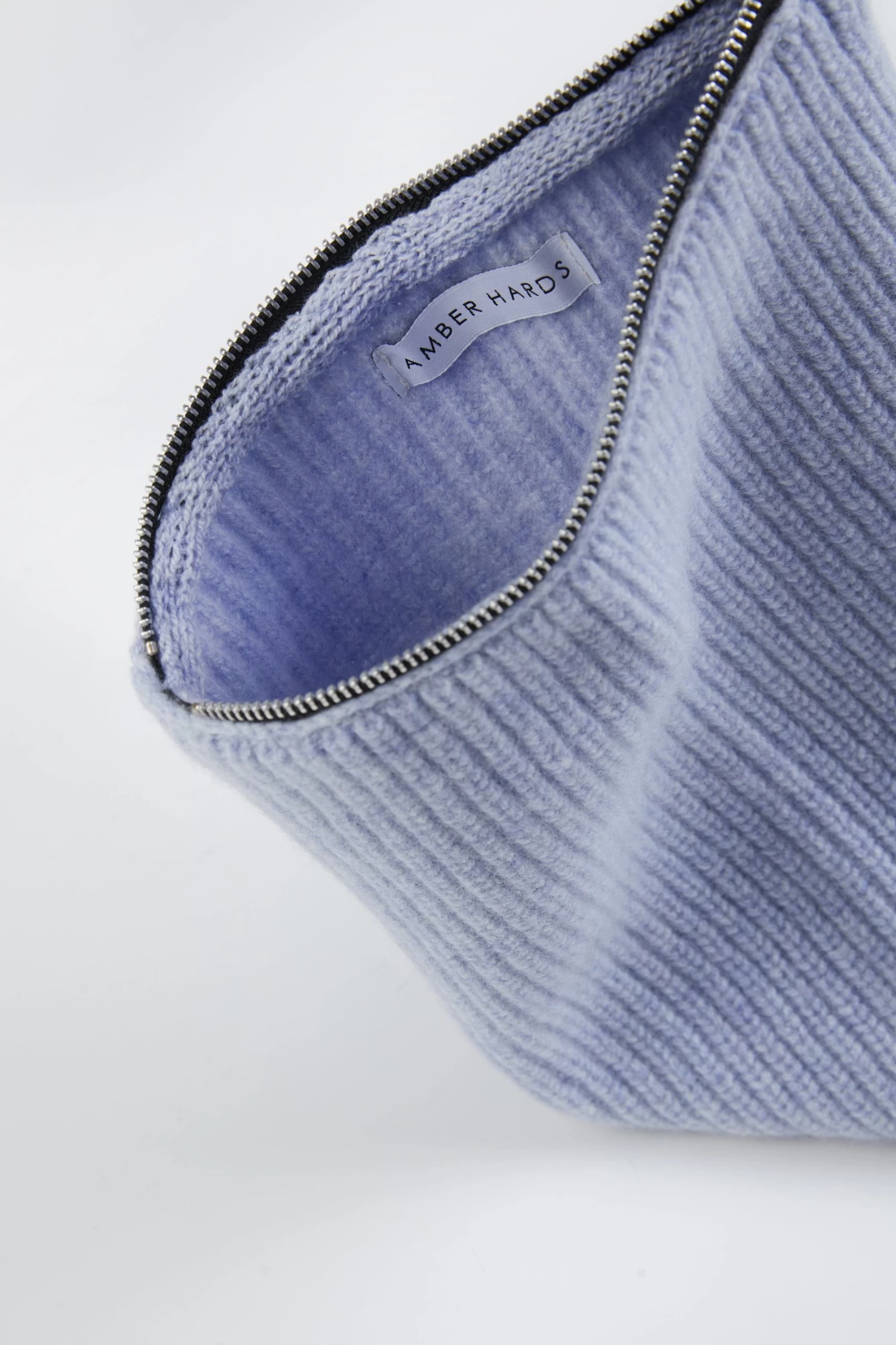 Amber Hards’ slouchy clutch is hand-knit in English rib from incredibly soft lambswool into a triangular shape by the designer herself. It offers plenty of space for your phone, cardholder and keys. Wear it to add a pop of color into neutral outfits.