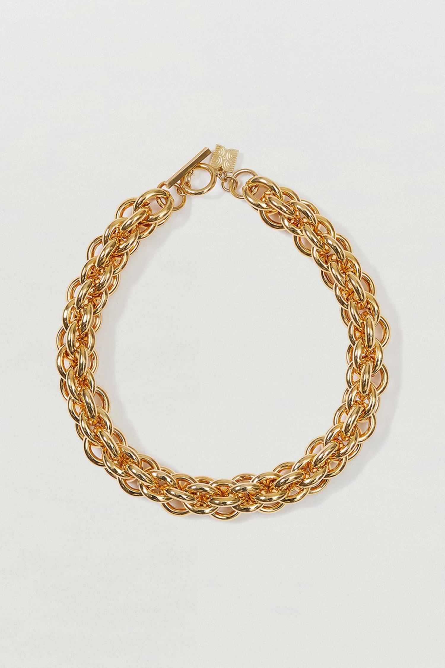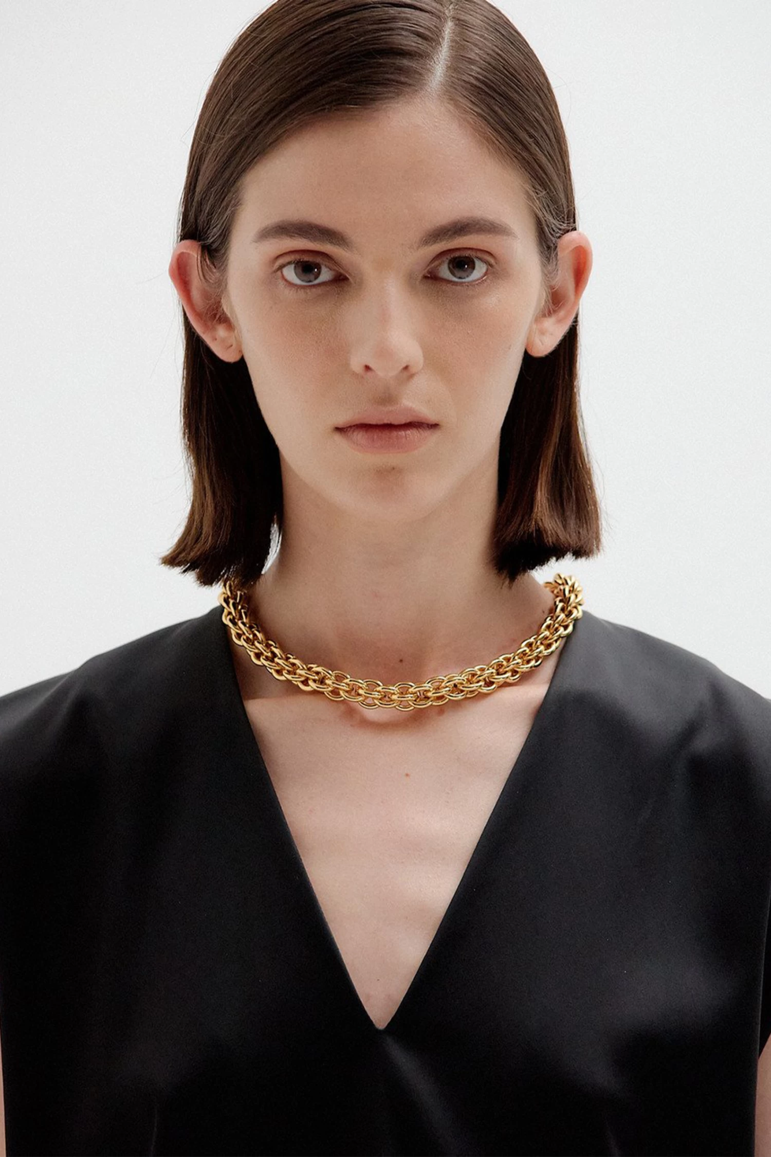 Choose the ‘Soda’ cable chain necklace from EENK for an elegant finishing touch. This weighty design is handcrafted from 24K yellow gold-plated brass with a dangling EENK logo charm point.