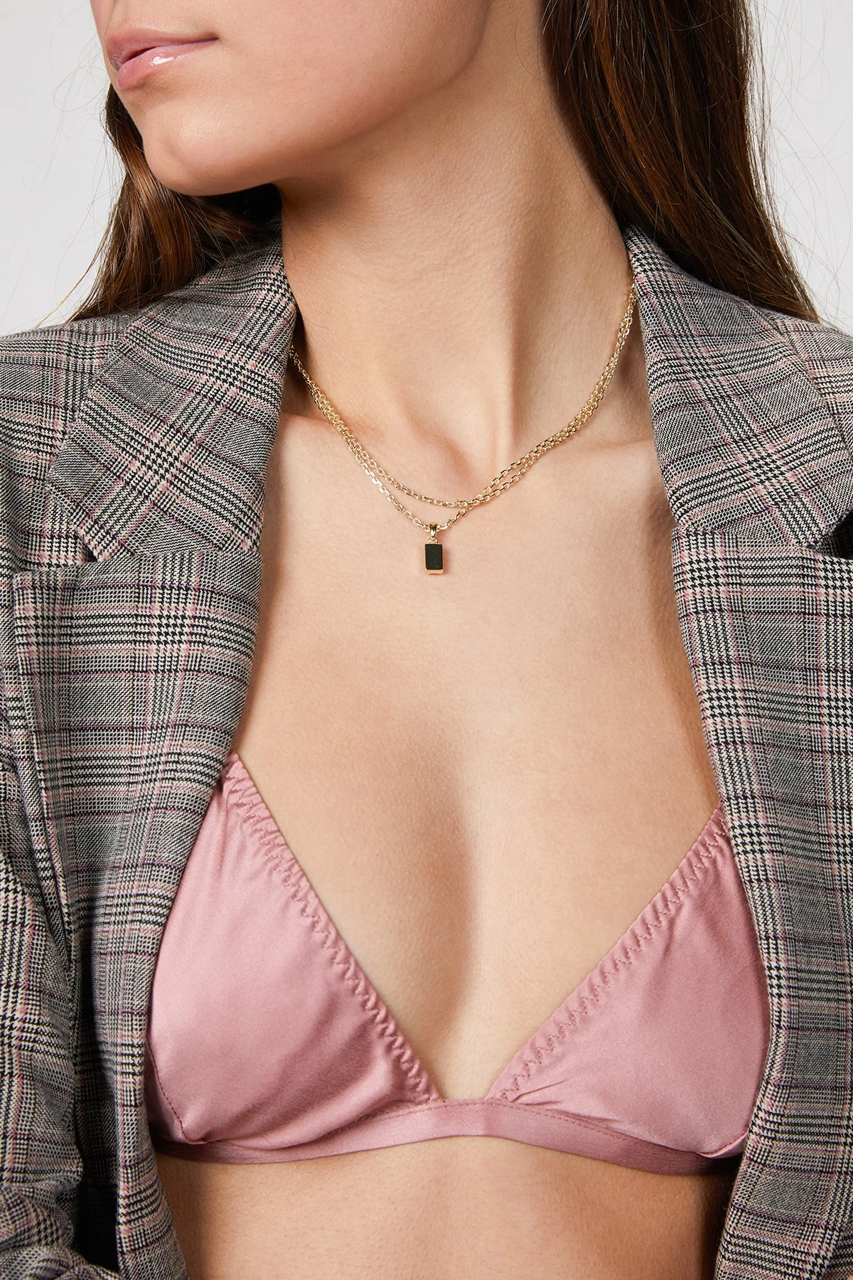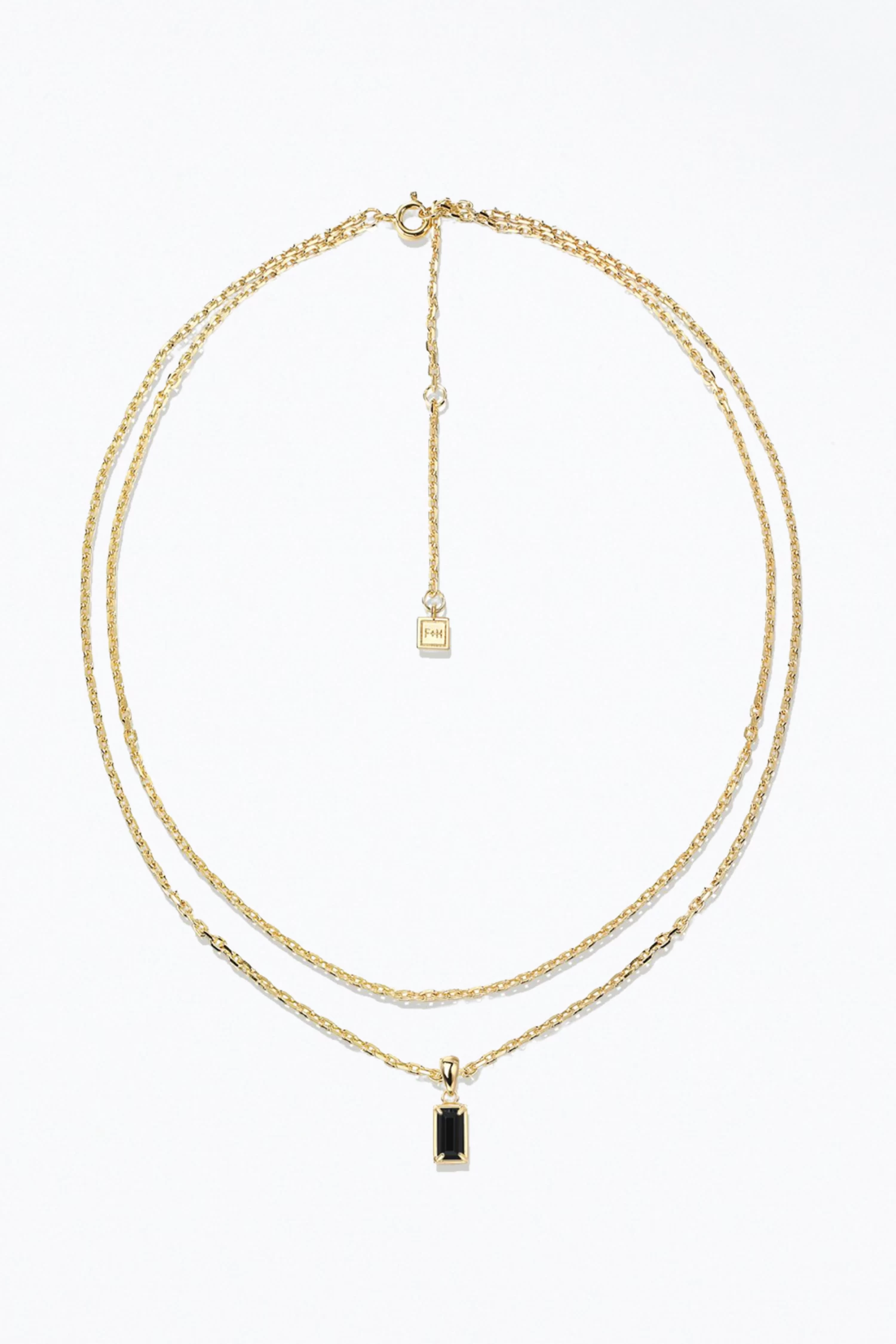 Handmade in Australia, F+H Studios’ ‘Stevie’ necklace is crafted from gold-plated metal and features two chains with the label’s signature square links. Adorned with a delicate onyx gemstone, the minimal design makes it elegant and easy to wear.