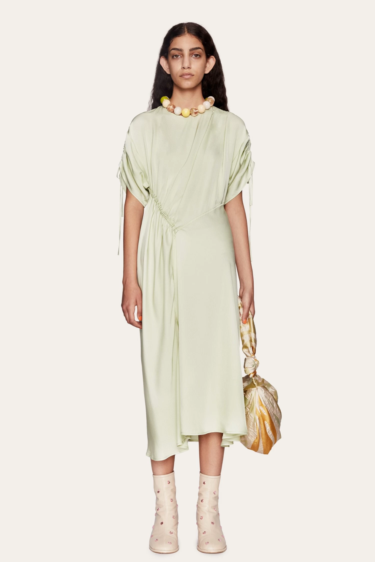 Stine Goya aims to provide a wearable way customers can express their true character through timeless, unique designs and this ‘Davina’ dress is a true reflection. This midi dress features the designer’s signature drawstring detail and has a ruched bodice with adjustable self-tie sleeves. Take your styling cue from the brand’s campaign and pair with colorful ankle boots.