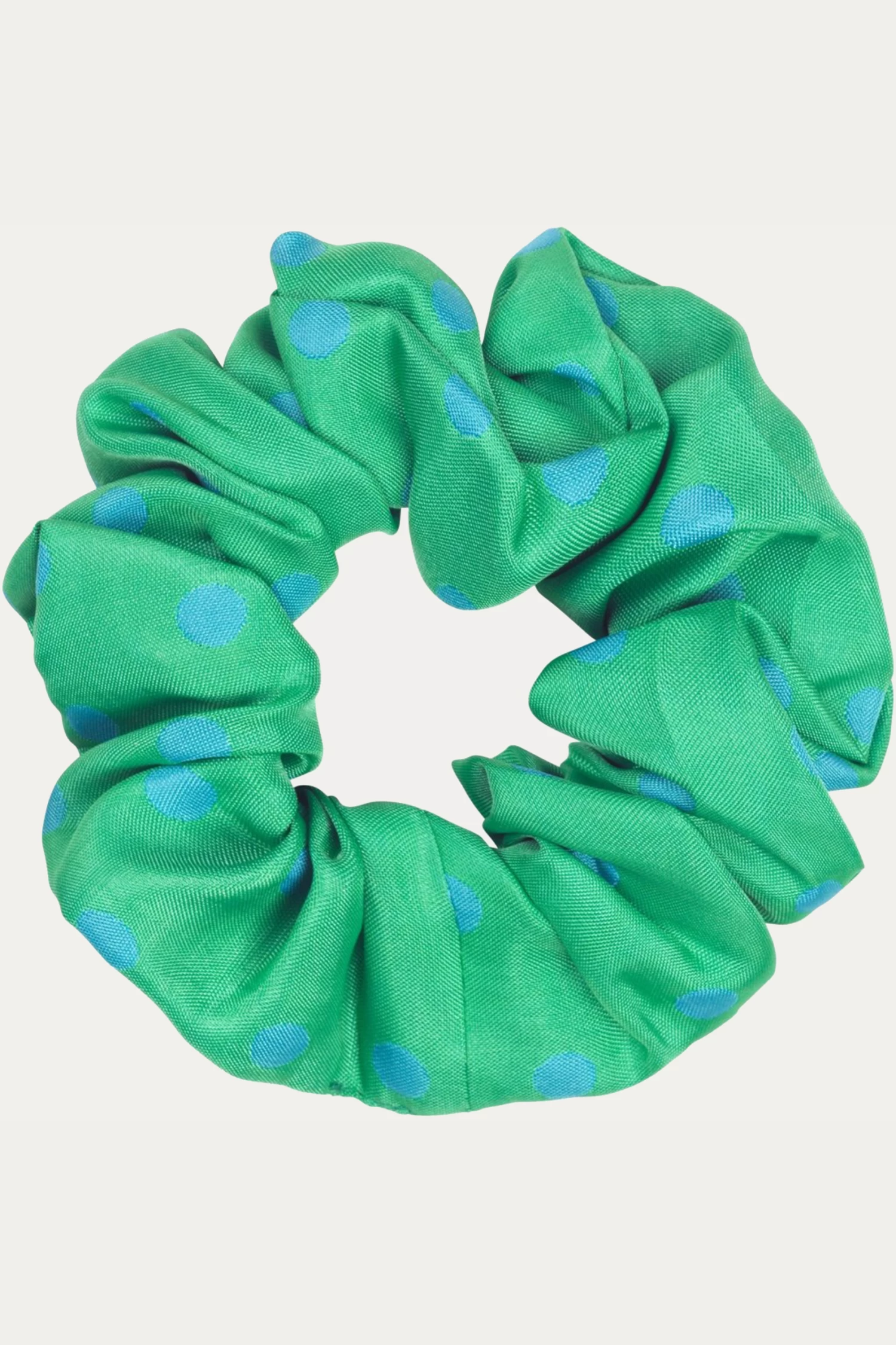 Stine Goya’s hair tie is a playful take on scrunchies. On a shimmery green base with blue dots, it is made for a strong hold – even the thickest of locks will stay in place.