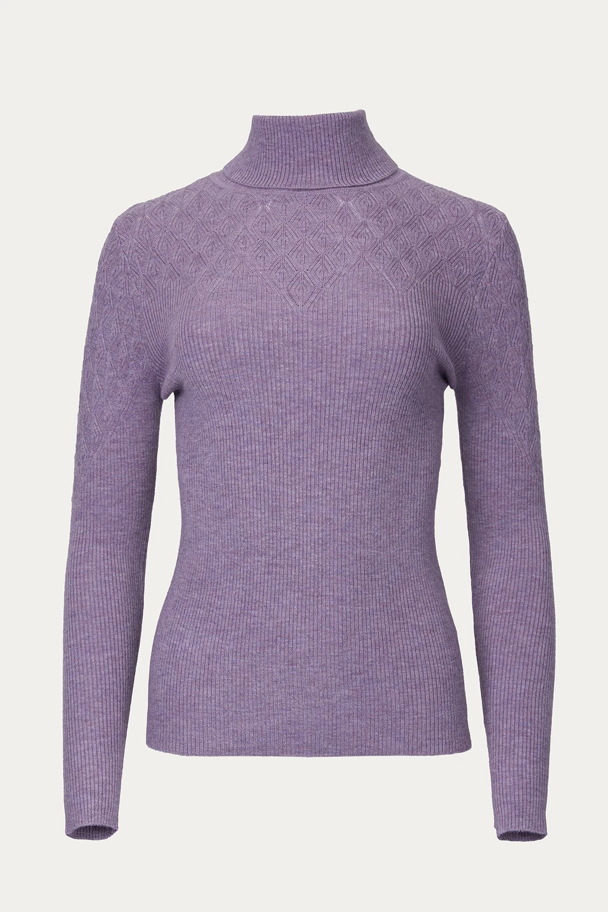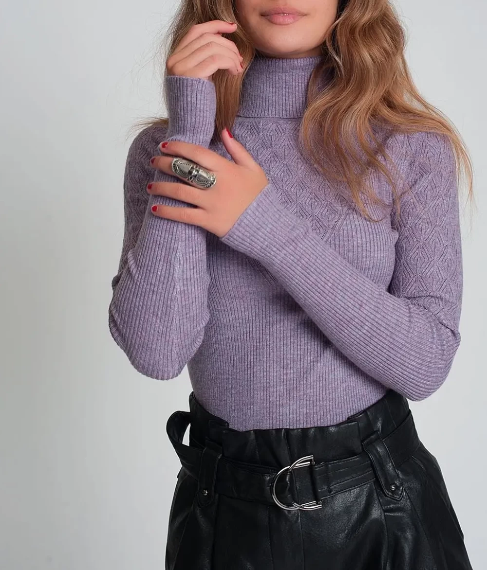 Q2’s turtleneck sweater is an easy piece to mix and match with separates in your wardrobe. It’s cut from pointelle-knit to a figure-hugging fit that makes for effortless layering when the temperature dips.