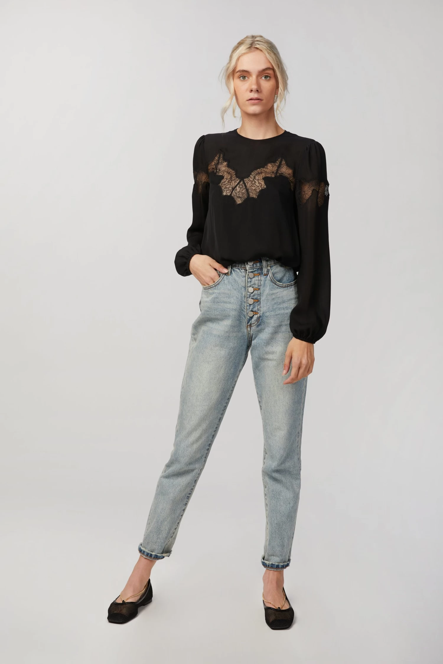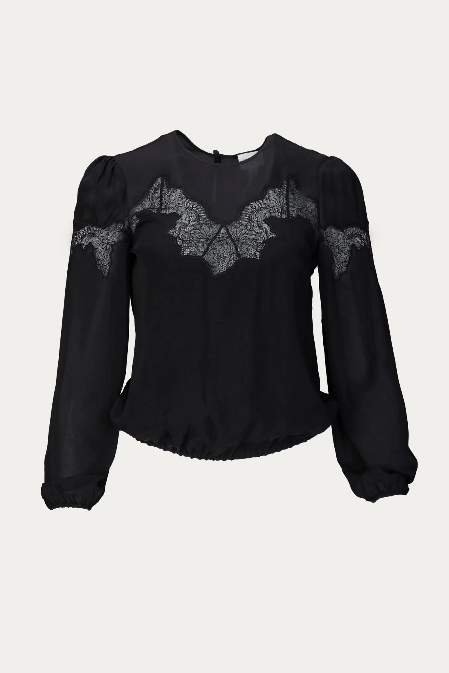 Cami NYC’s blouse is beautifully cut from black silk-georgette and floral lace that’s sheer at the yoke and sleeves, so you can really appreciate the intricate detail. It’ll look especially elegant styled with tailored pants and heels.