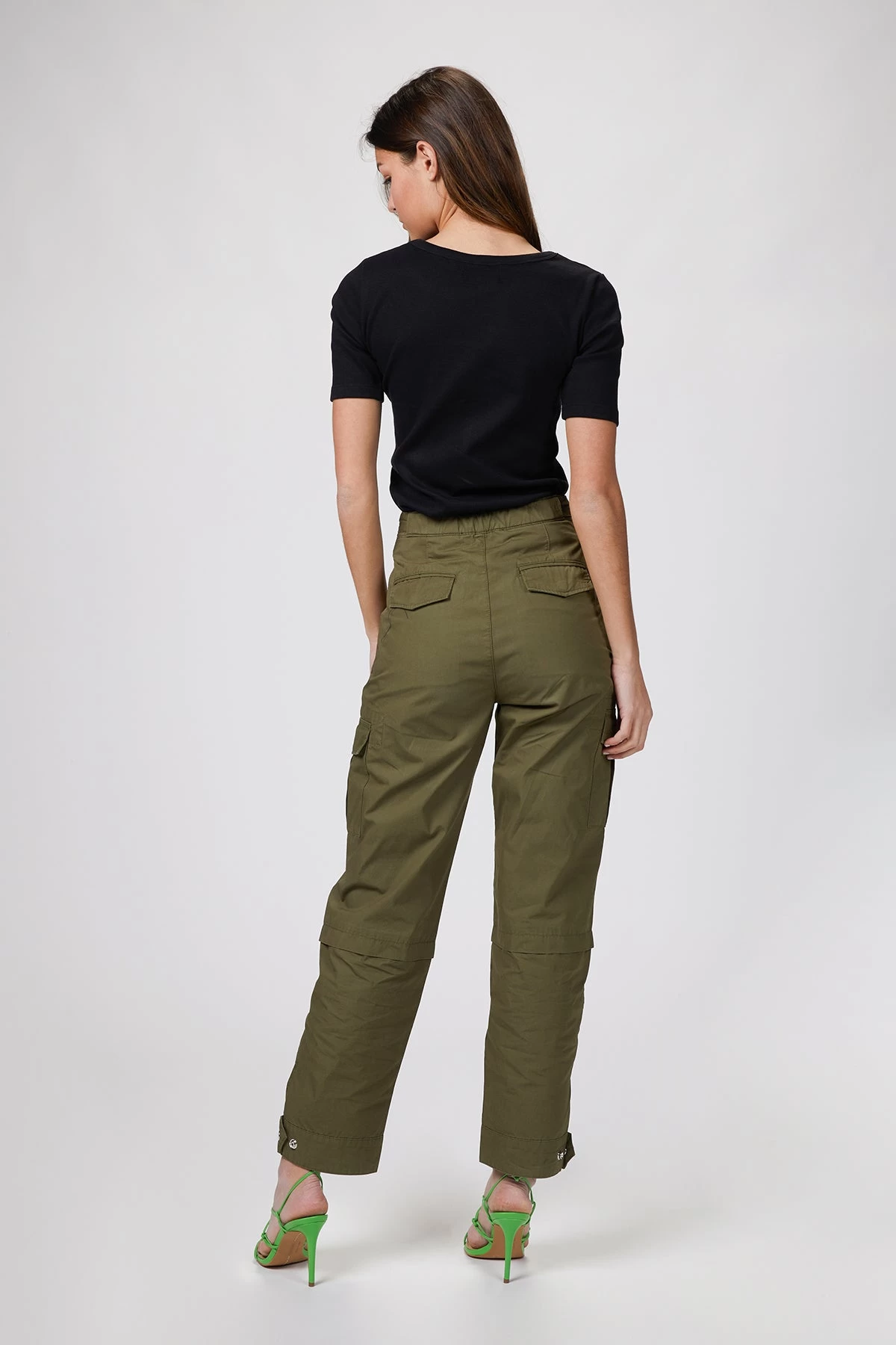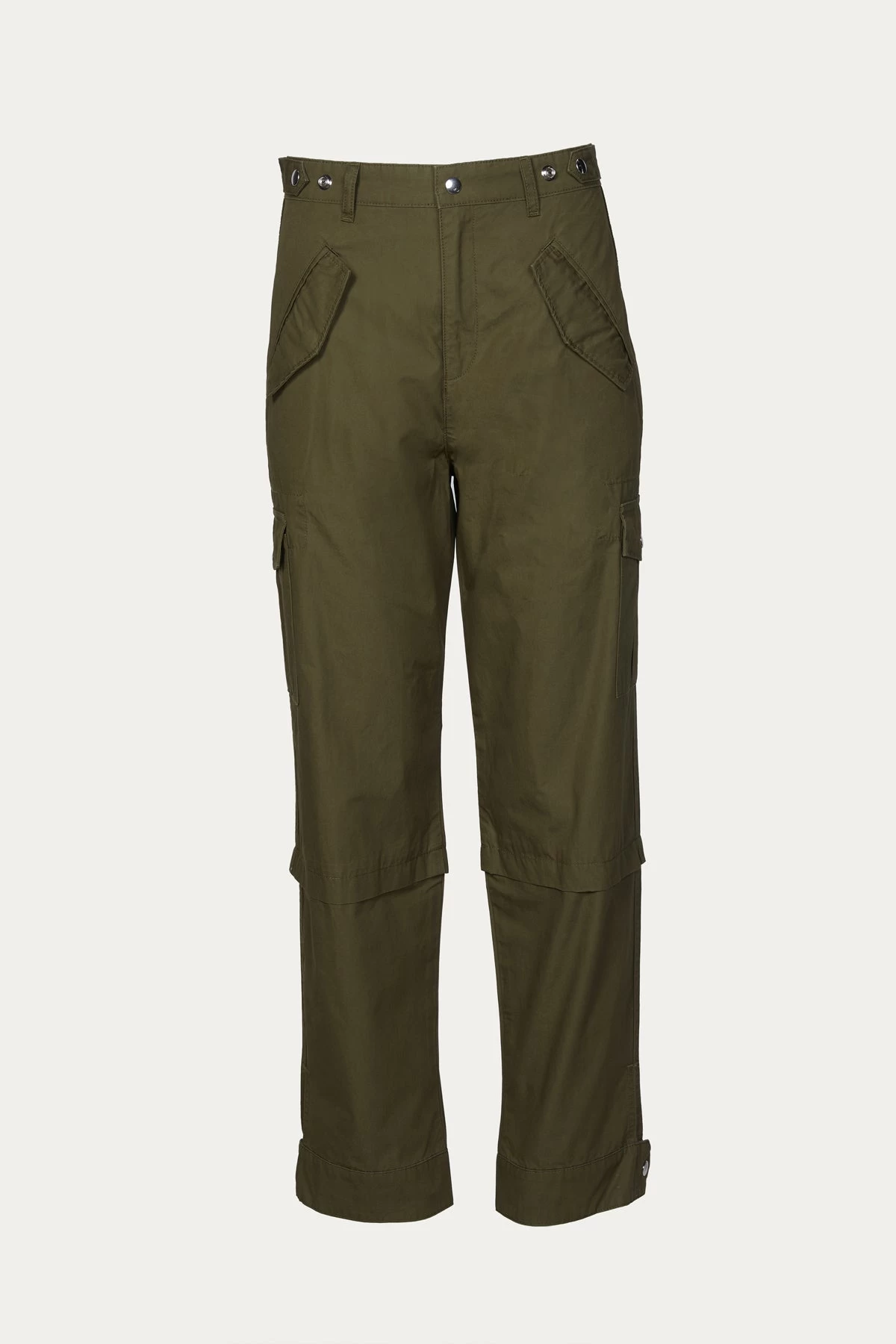 Showcase a utilitarian edge in these army green military trouser from The Kooples. Cut from canvas in a straight-leg shape, they’re designed to sit high on the waist with oversized cargo pockets. Turn up your edge and pair them with a bright, strappy sandal. Â