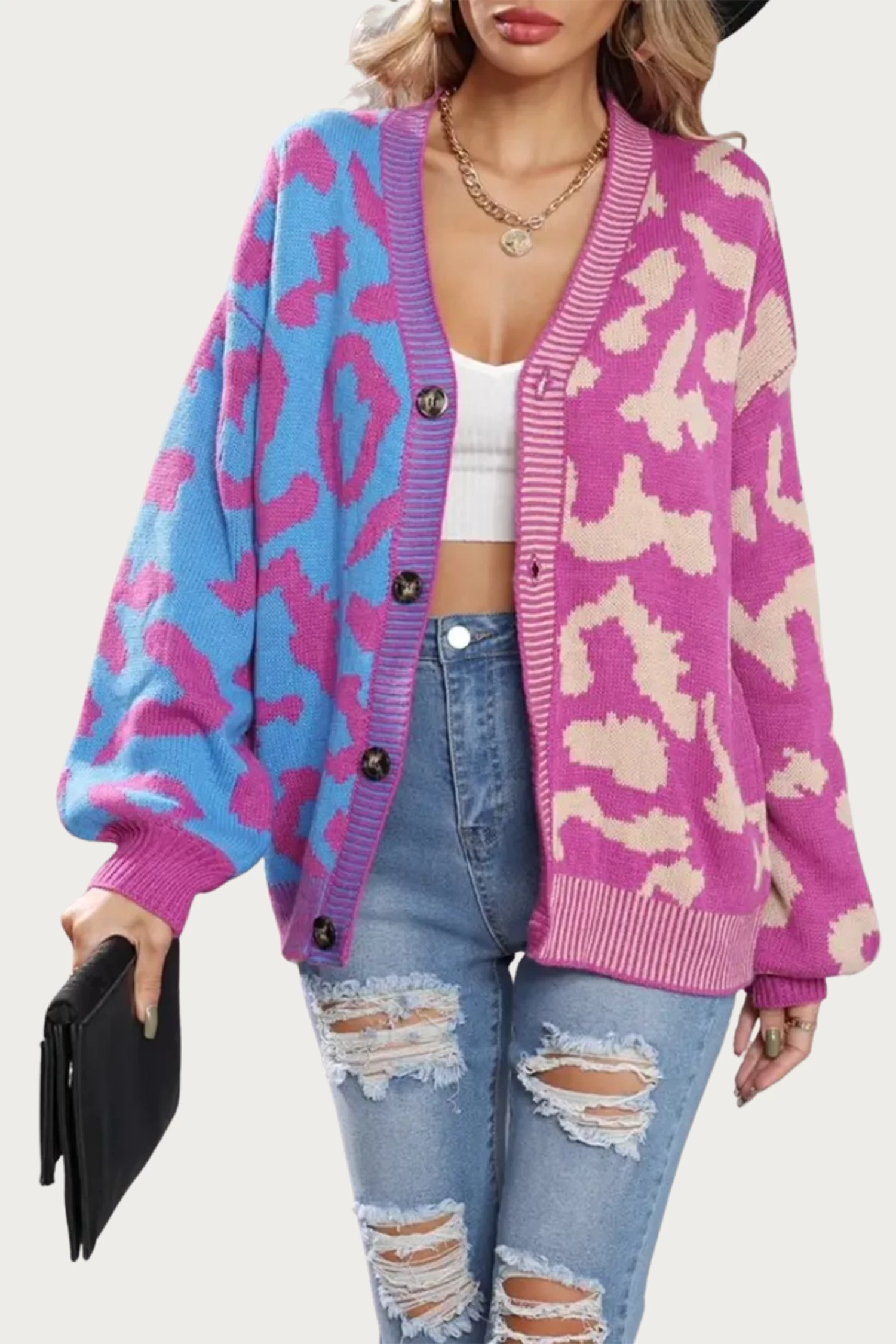 Fiercely colorful in contrasting leopard halves, ePretty’s cardigan is a chic and cozy addition to your cold-weather wardrobe. Made of medium-weight knit, it features a front-button placket and is cut to an oversized, slouchy fit. Wear yours over a mini dress or your favorite basics.