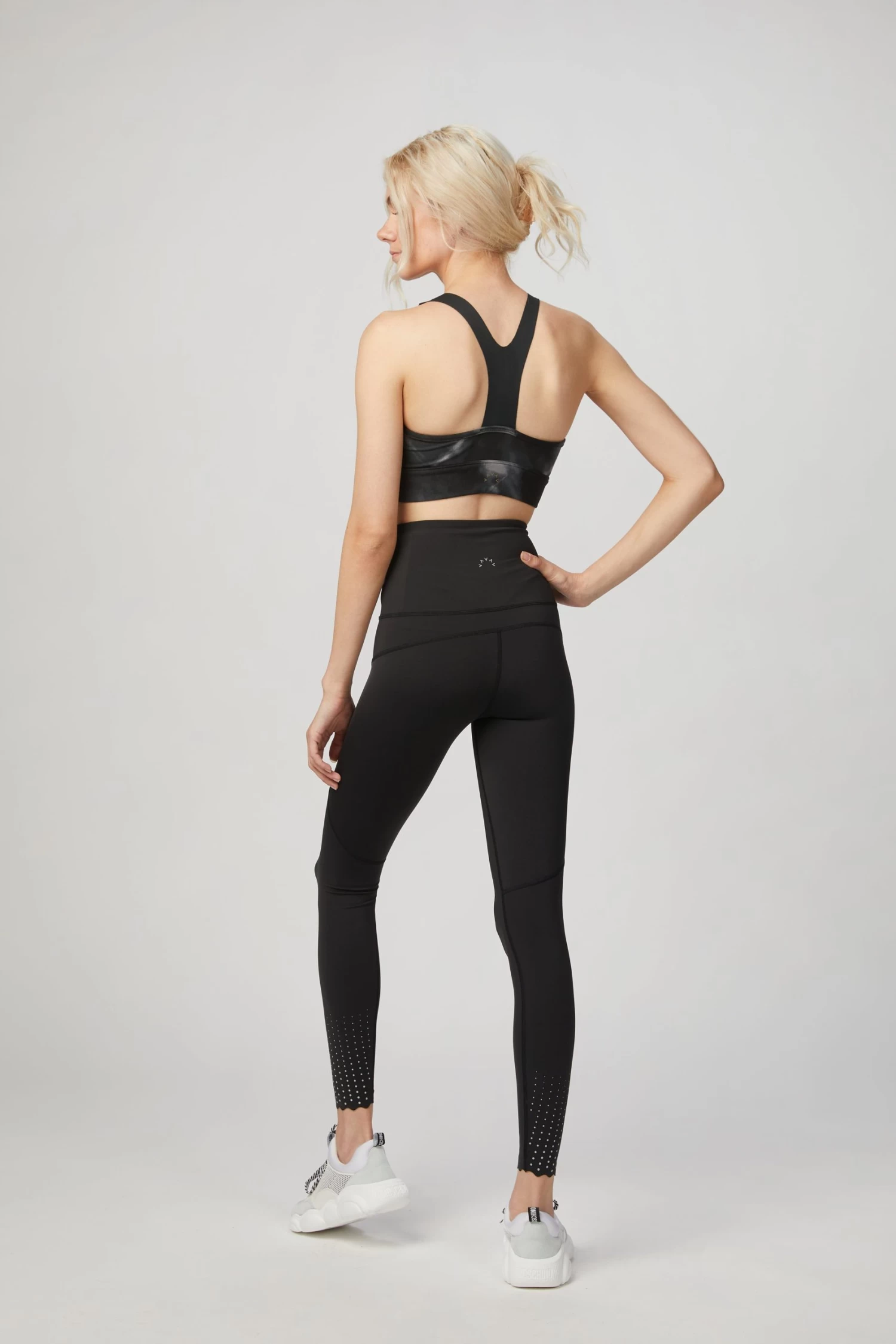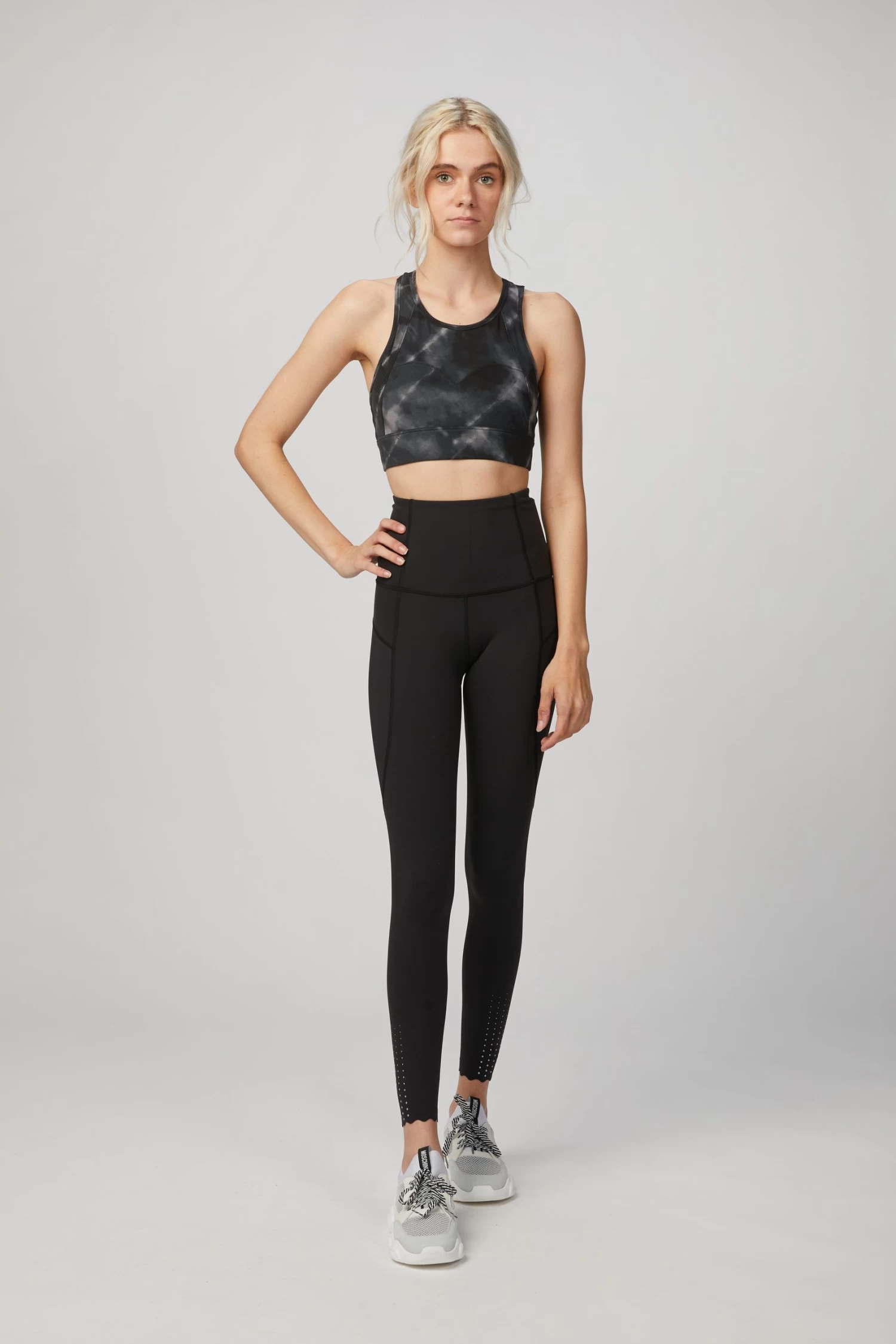 Varley’s high-impact ‘Bassett’ bra is designed from a four-way stretch, lolux fabric for flexibility and movement. The neoprene, Y-shape, thick back strap provides support and avoids any digging or discomfort. The polyester-elastane blend makes this bra durable, moisture-wicking yet lightweight.  You’ll find extra coverage with the high-neck style. Features removable cups.