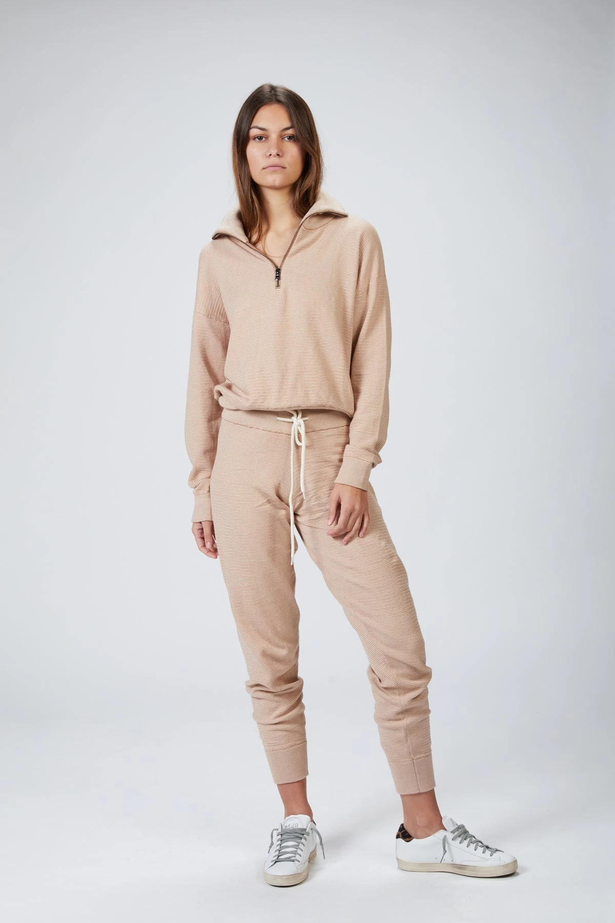 The perfect layer to and from the gym, Varley’s ‘Buckingham’ knit half-zip is made from structured pique knit fabric that has a textured hand feel. It features a drawcord at the hem to temper the relaxed fit. Guaranteed to keep you cozy on down days, you can pull up the zipper for a full-on turtleneck or leave it unzipped and fold down the collar. Â
