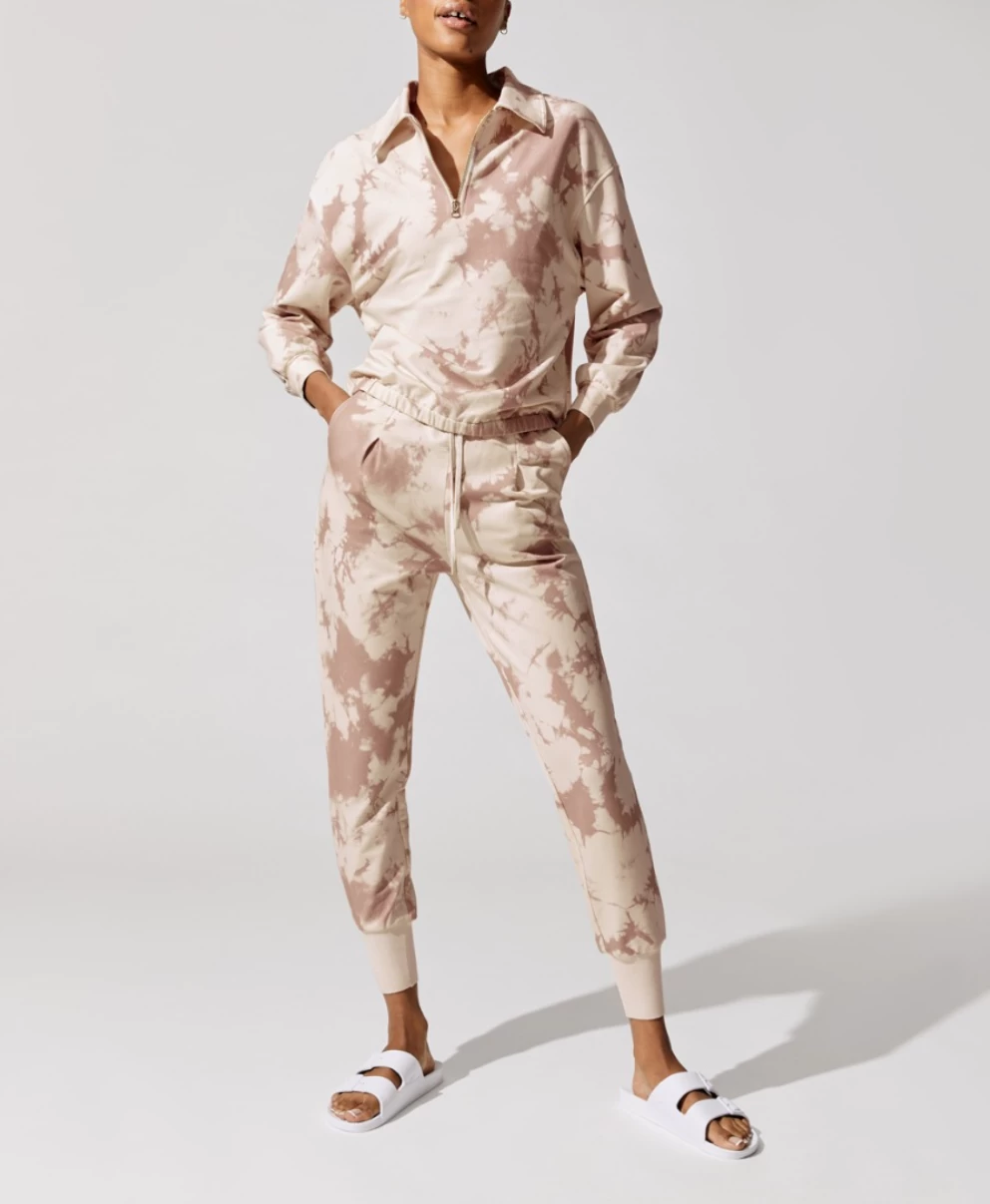 Made from Varley’s soft and signature stretch cotton-jersey sweat fabric, the ‘Keswick’ sweatpant has a tapered fit through the leg with a wide cuff at the ankles. They have an internal elastic waistband with flat drawcords, front pleats and side seam scoop pockets.