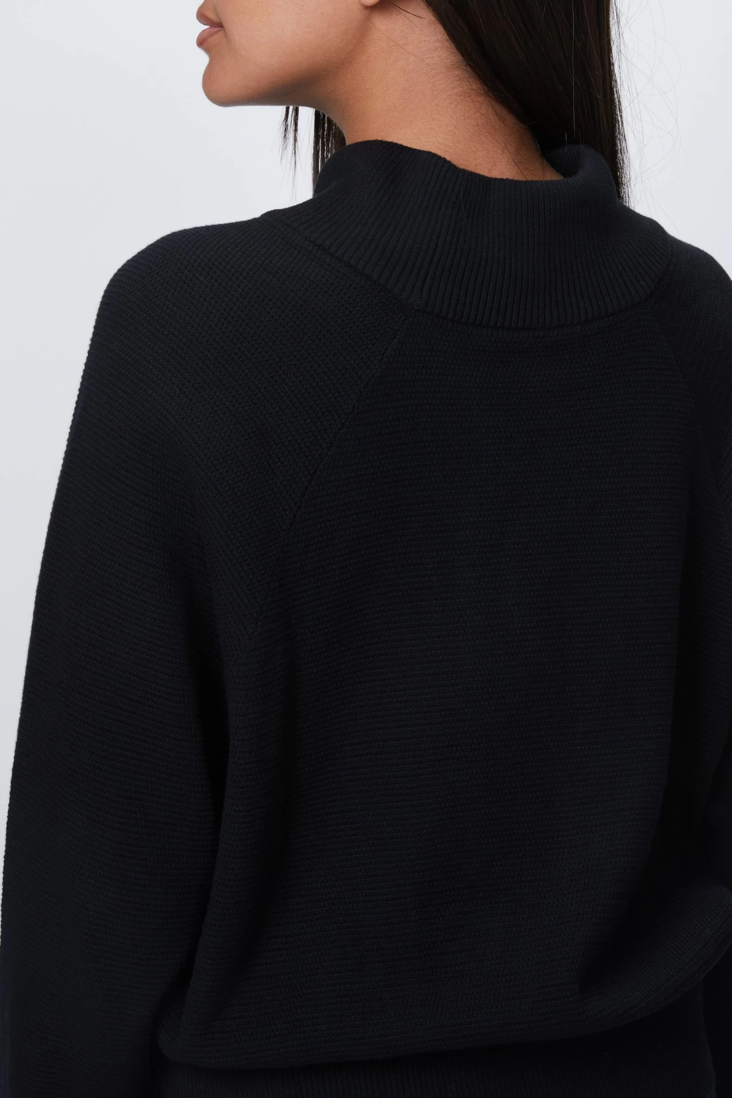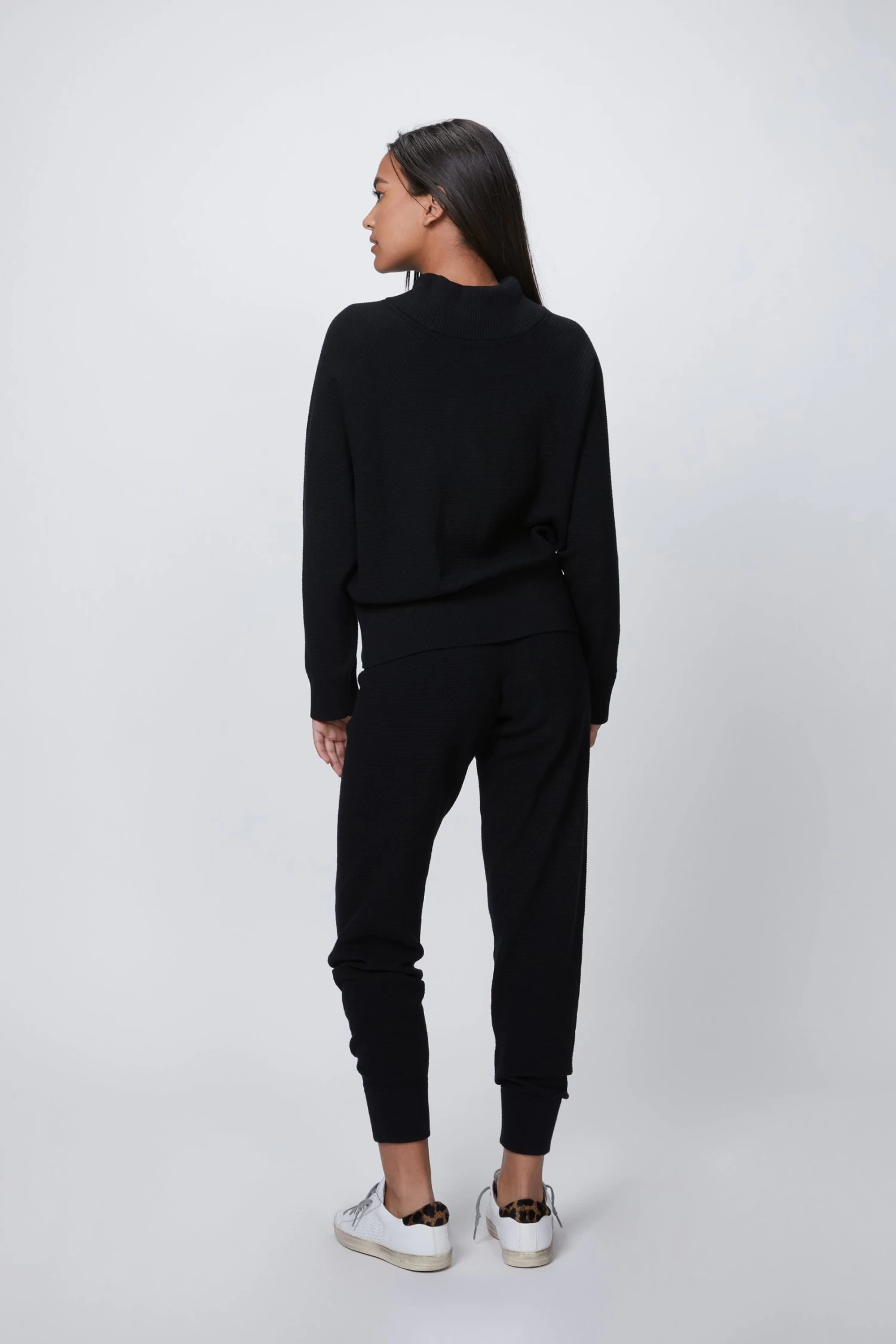 With a standing mock turtleneck and exaggerated raglan sleeves, the ‘Maceo’ sweat is perfect for layering post-practice. In pique knit fabric, this style features a relaxed fit and textured hand feel. Pair with the matching ‘Alice’ knit sweatpants or mix with any of the label’s leggings.