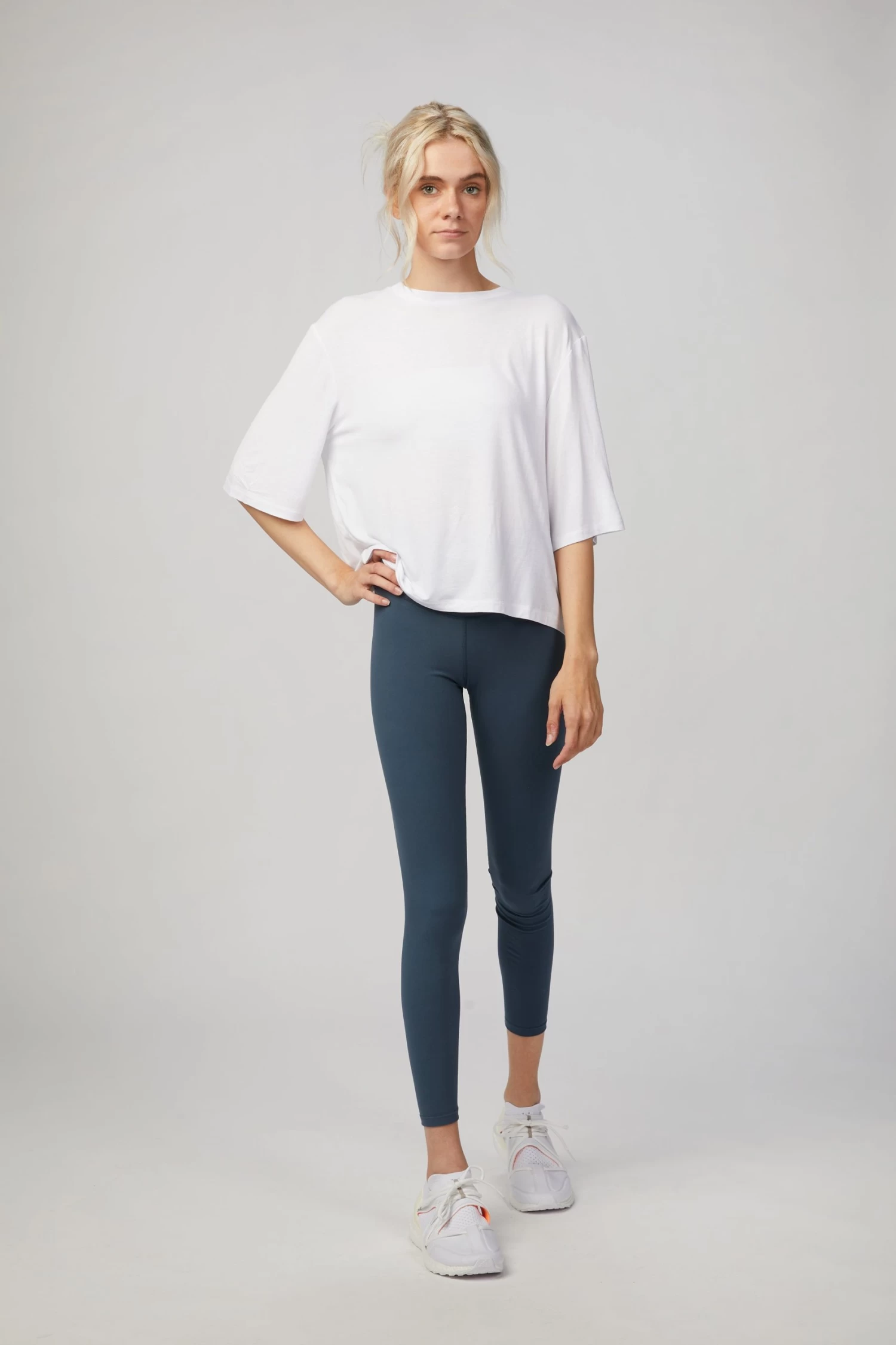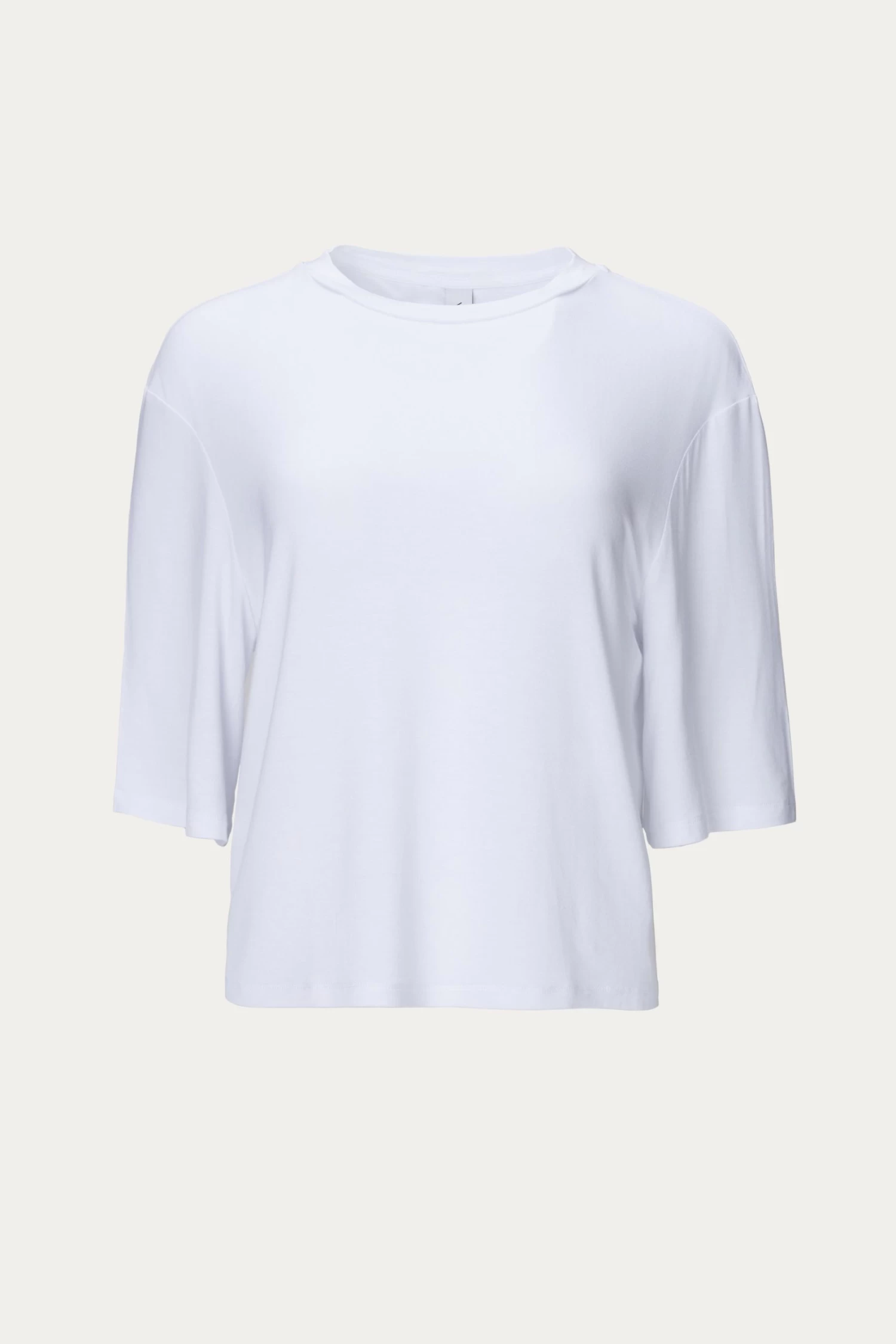 With its flattering drape for any shape, this ‘Robin’ tee features a high neck, boxy silhouette and elbow-length sleeves. Your new go-to cover up tee for workouts, tally this tee as one of your new favorites.