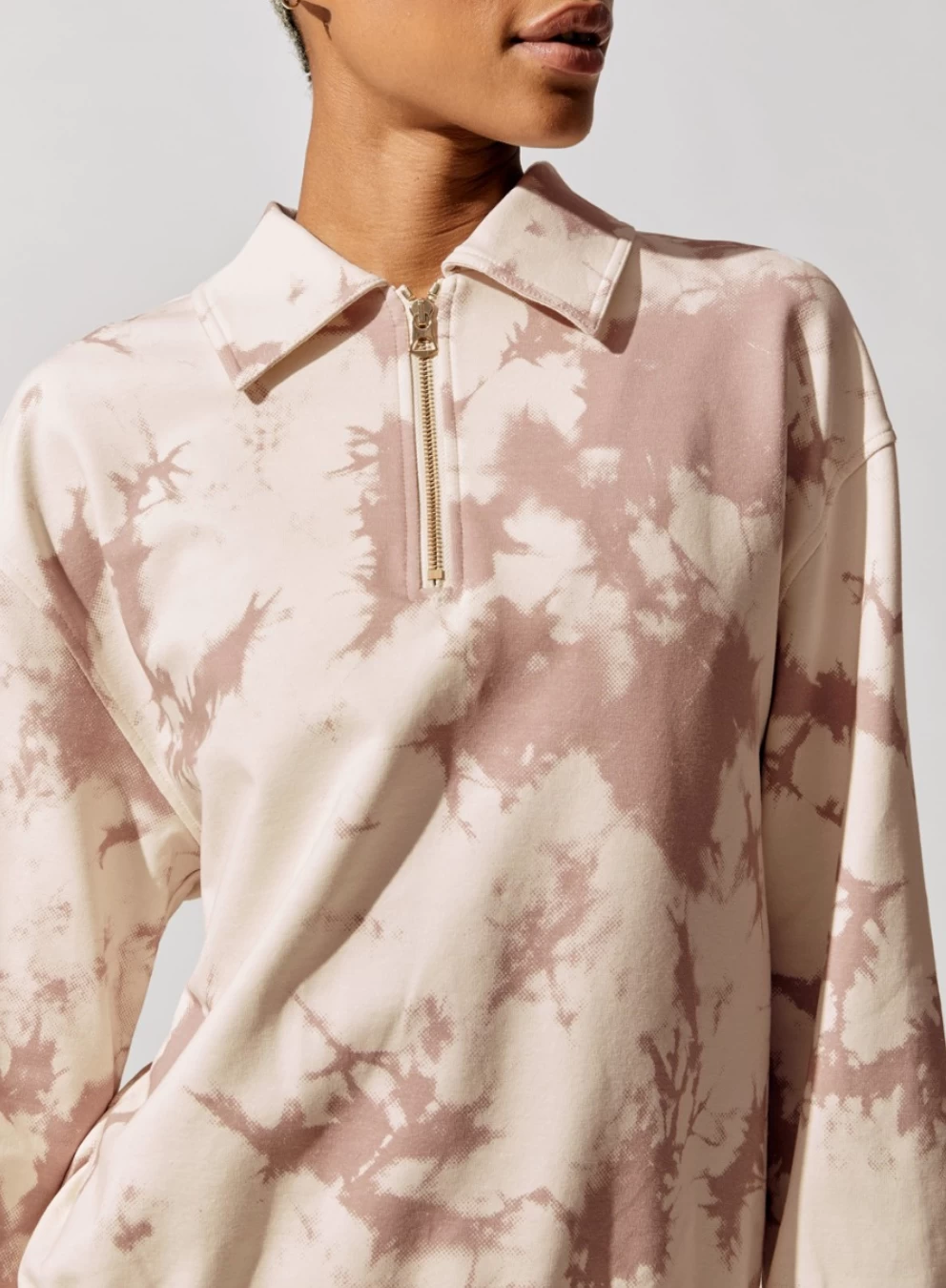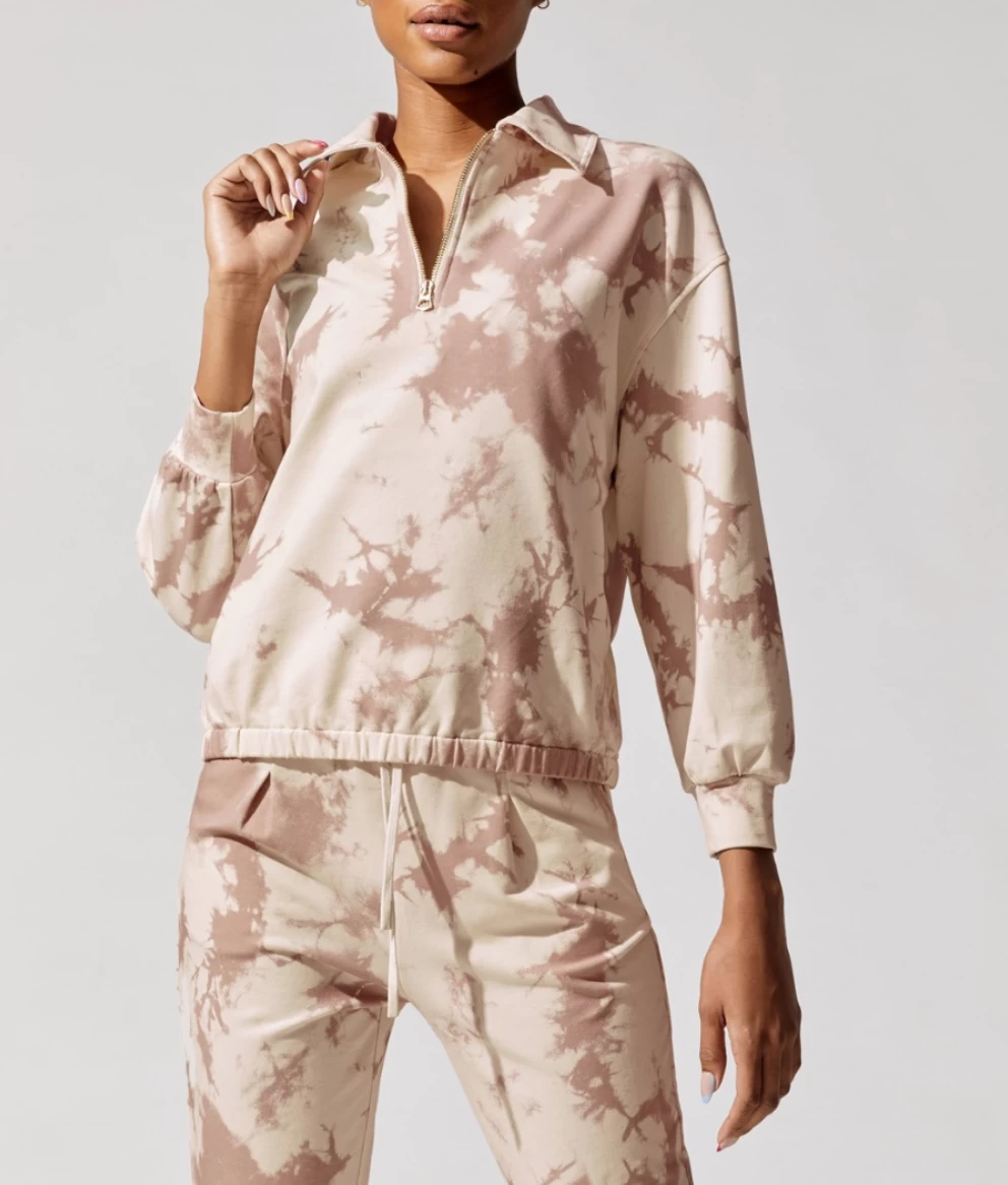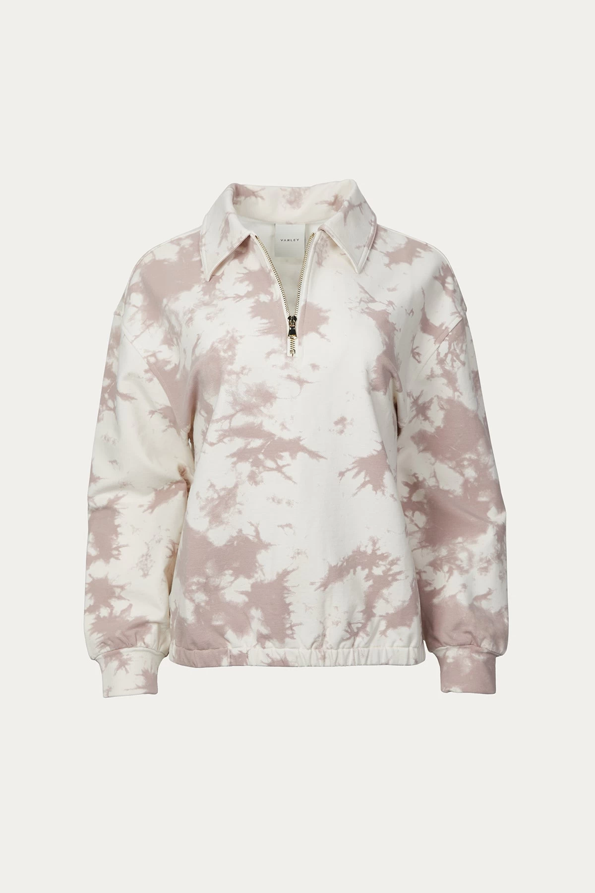 With a half-zipped front, this ivory and pink tie-dyed sweatshirt from Varley is crafted from their signature stretch cotton-jersey sweat fabric that is so soft and comfortable. Featuring a pointed collar, it is finished with ribbed cuffs and an elasticated hem. It will look just as good with jeans as it will with the matching shorts or sweatpants.