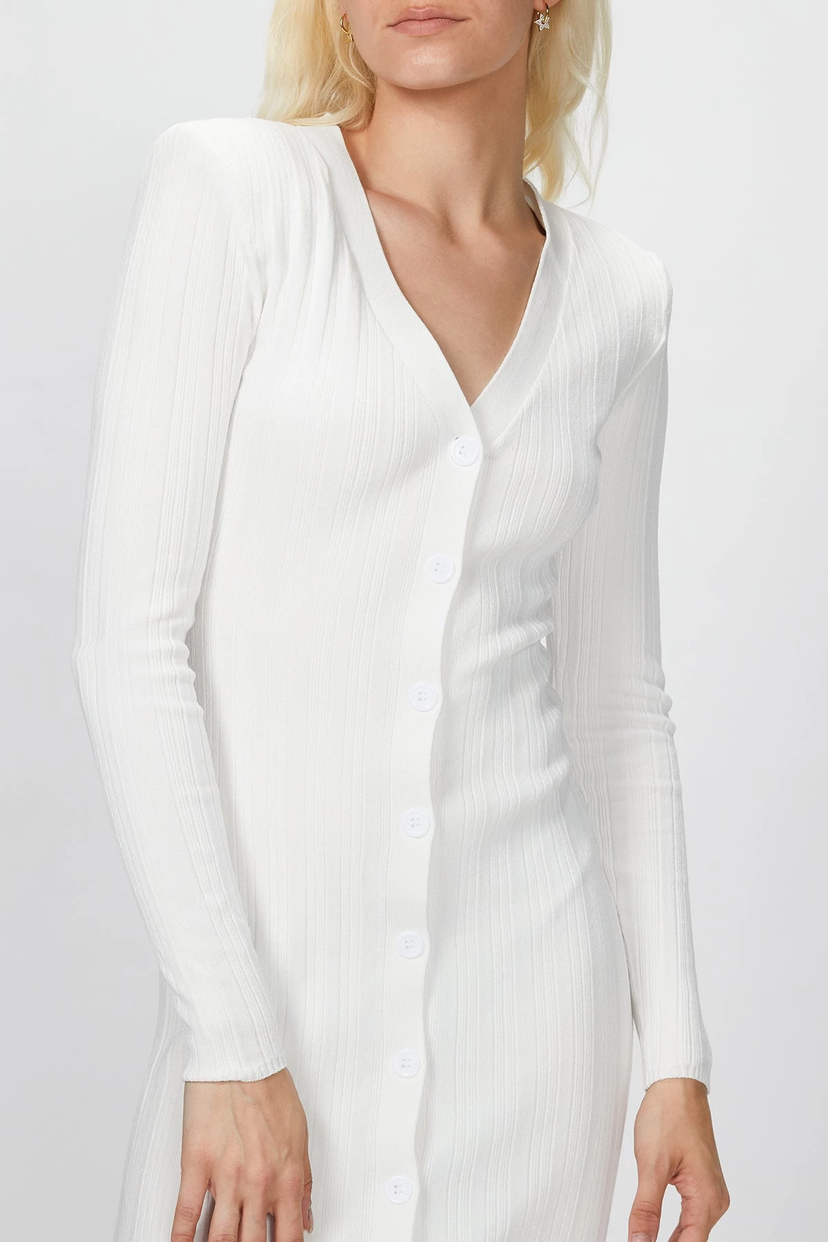 Ronny Kobo elevates your essential knitwear rotations with the svelte ‘Vianne’ dress. Made from a ribbed-knit blend, the design hugs the figure’s natural contours and features structured shoulders. Wear yours as a maxi dress or open as an ankle-grazing cardigan.