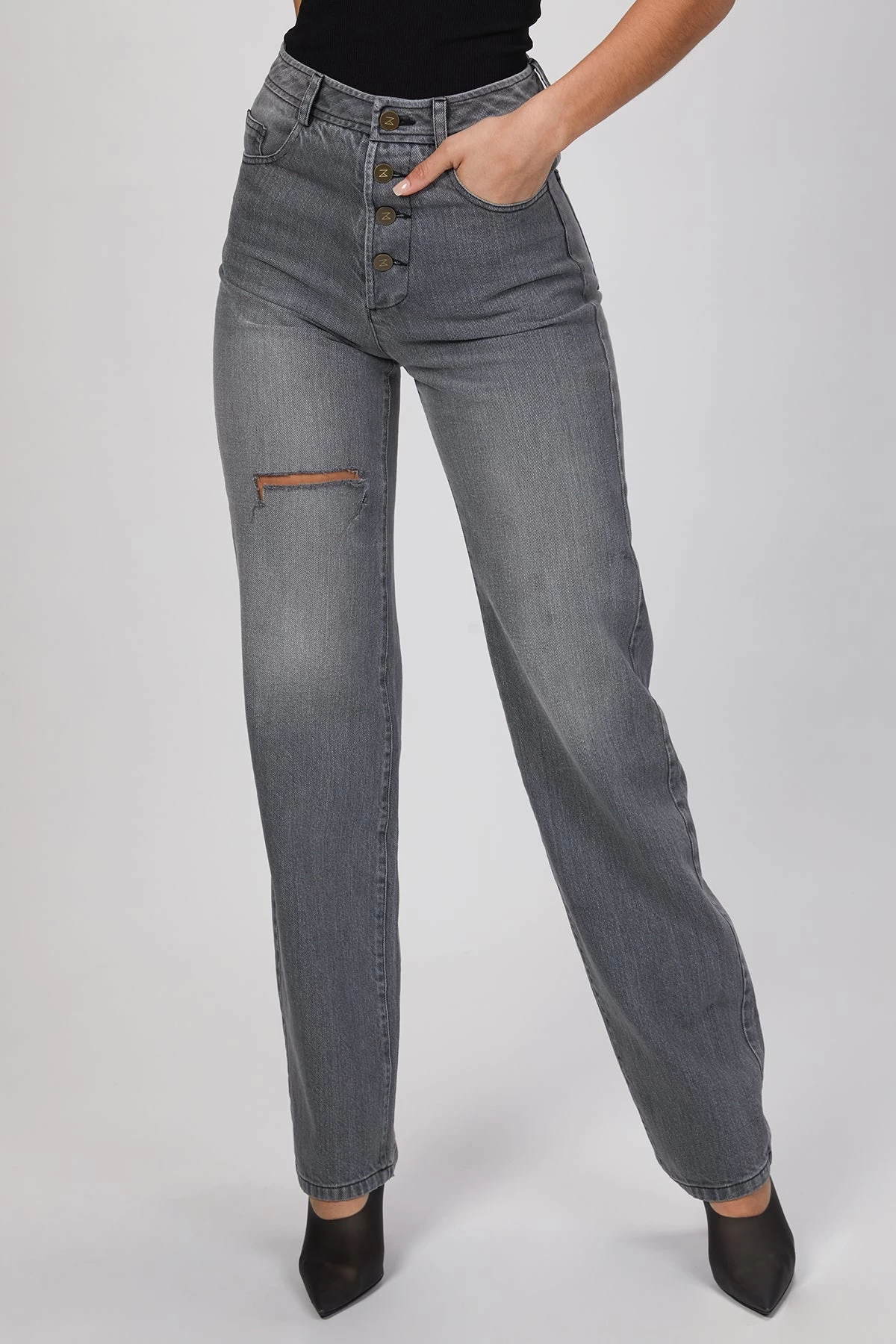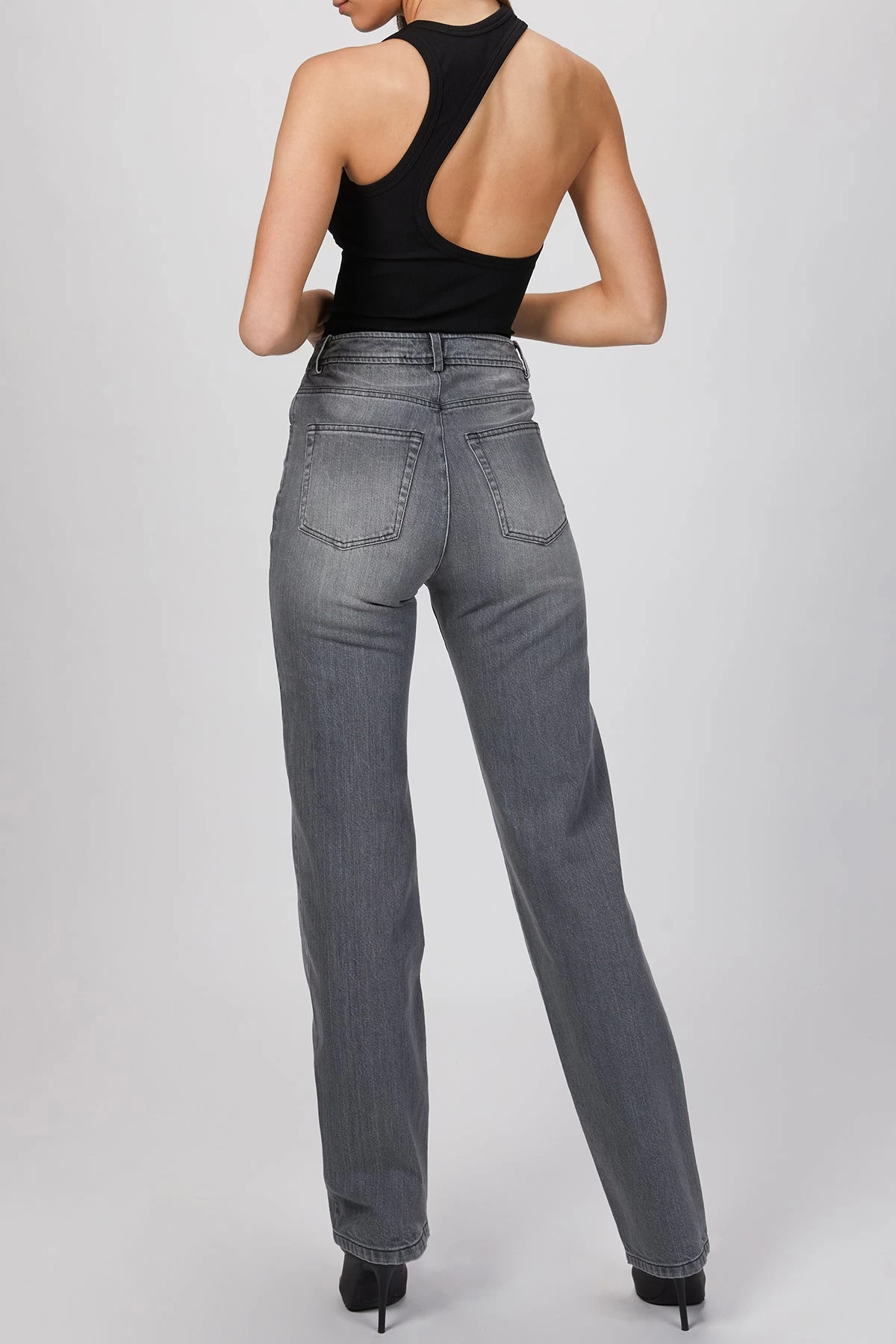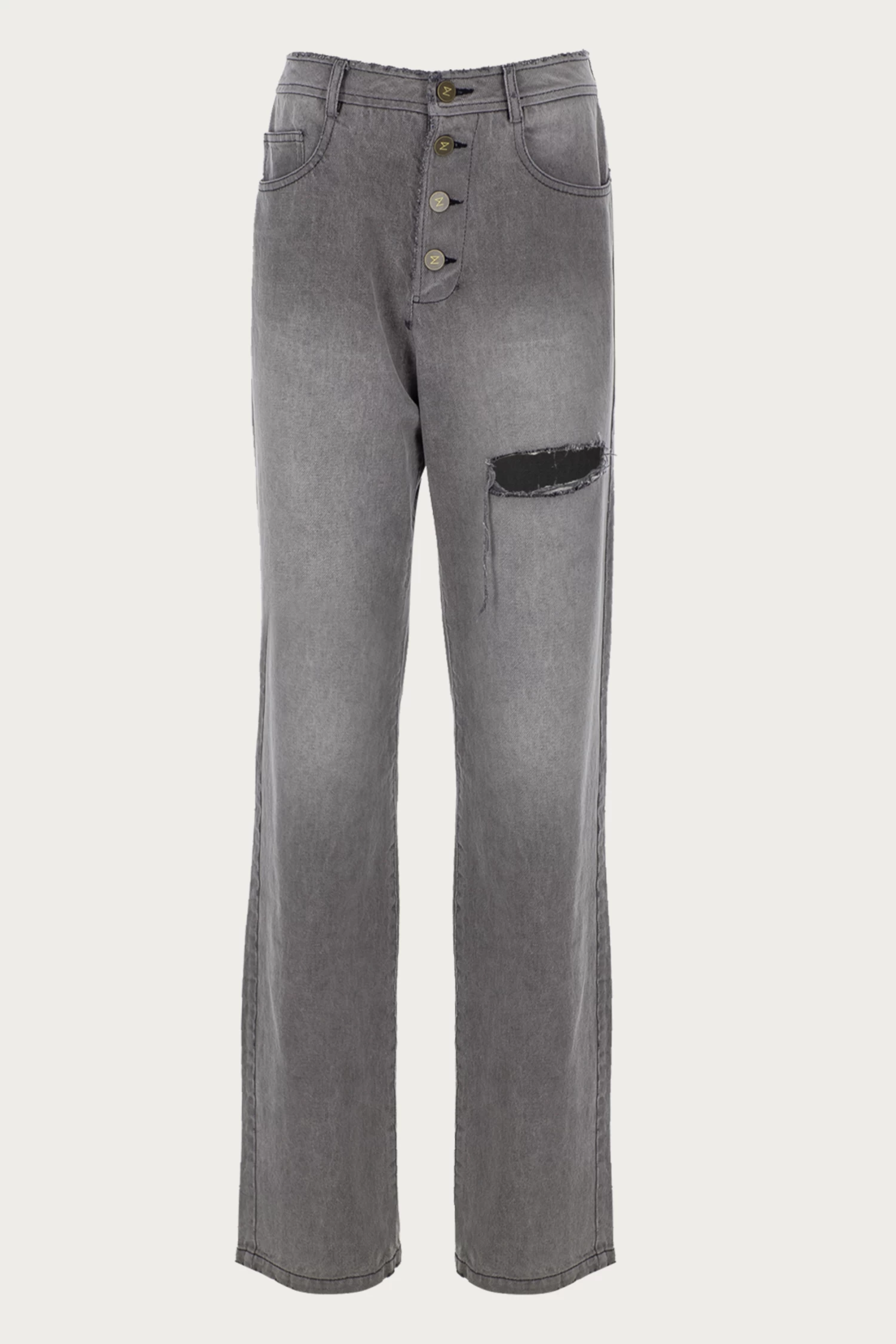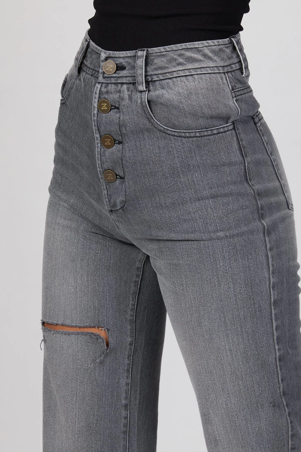 Inspired by vintage styles, Zeynep Arçay’s jeans are washed a soft grey with a ripped thigh for an authentically lived-in look. They have a high-rise and straight-leg cut and have been carefully faded and distressed for a vintage quality.