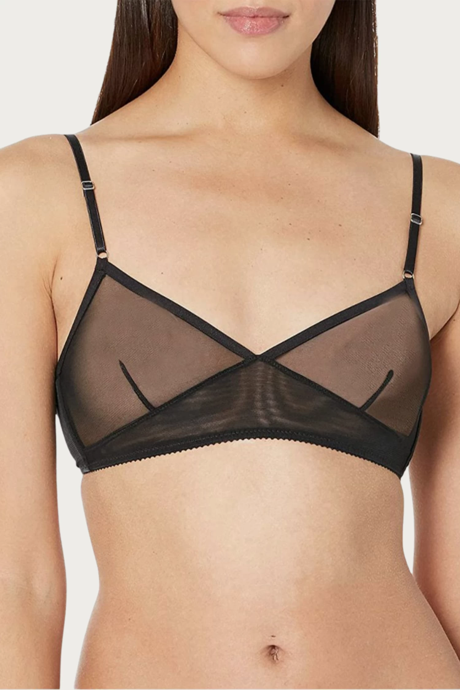 From the label’s ‘Whisper’ collection, Only Hearts’ soft-cup bra has a retro-inspired silhouette. Made of sheer stretch-mesh, it has triangle cups with soft boning on the sides and adjustable straps so you can temper the fit. Coordinate yours with the label’s matching thong or briefs.