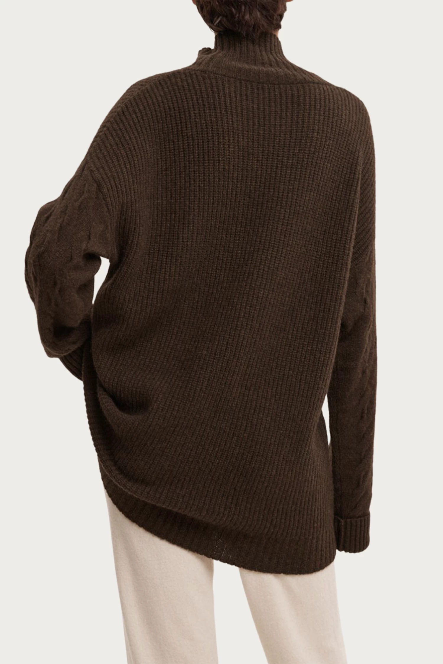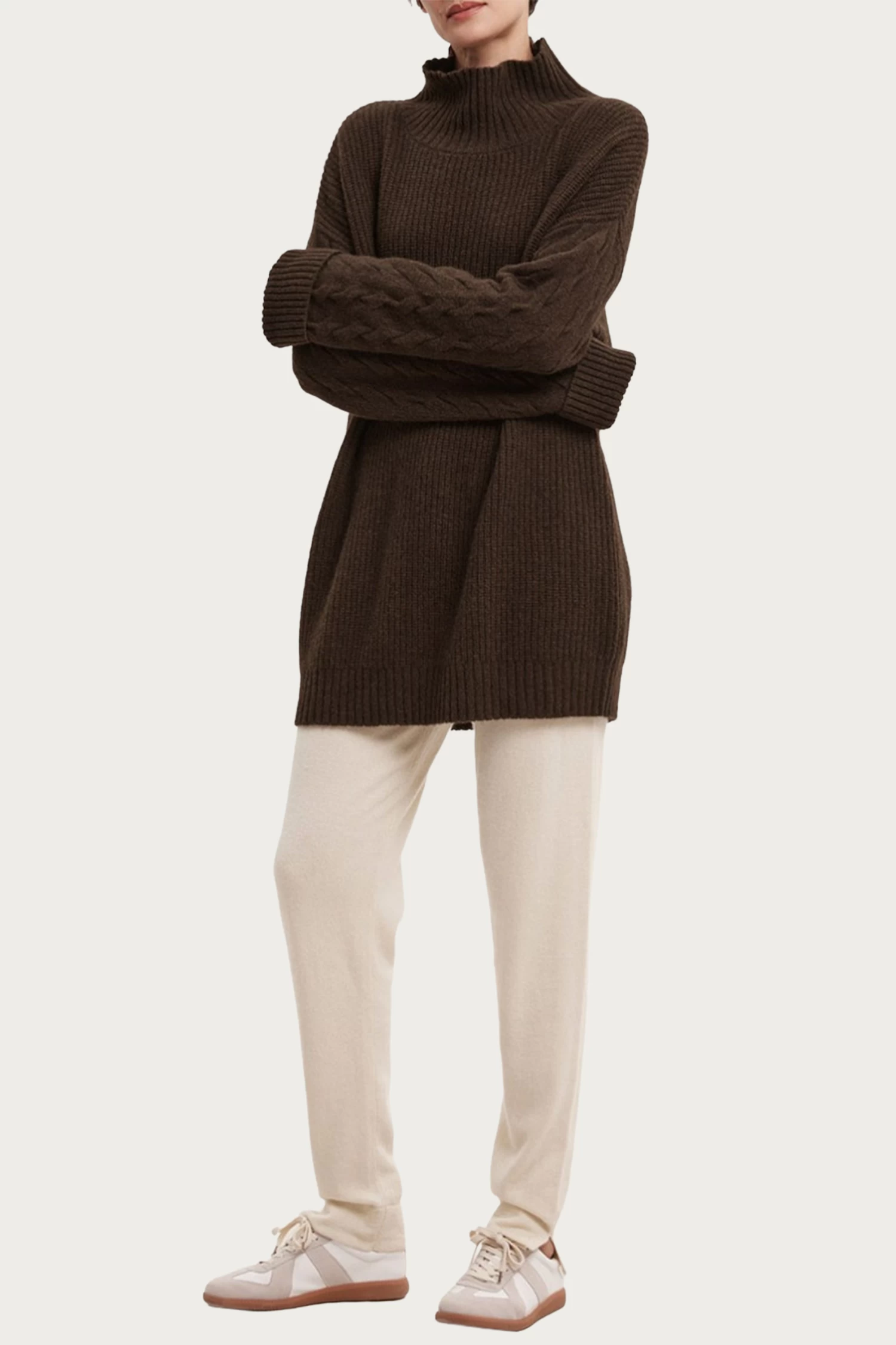This brown turtleneck sweater from Gentle Herd is a piece to invest in now and cherish for winters to come. Made from ultra-soft wool and yak-wool yarn, it’s rib-knitted to a relaxed silhouette with dropped shoulders and cable-knit sleeves. Style yours effortlessly with both tailored and off-duty pants.